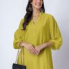 Solid Puffed Sleeve Women Kurta with Flared Palazzo Pants