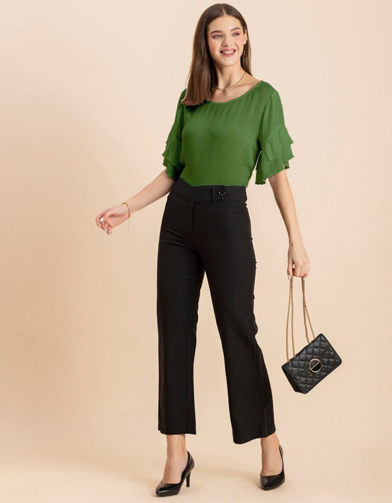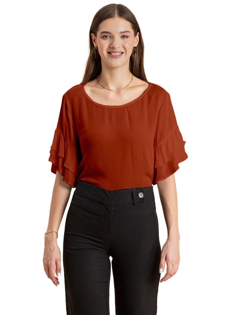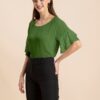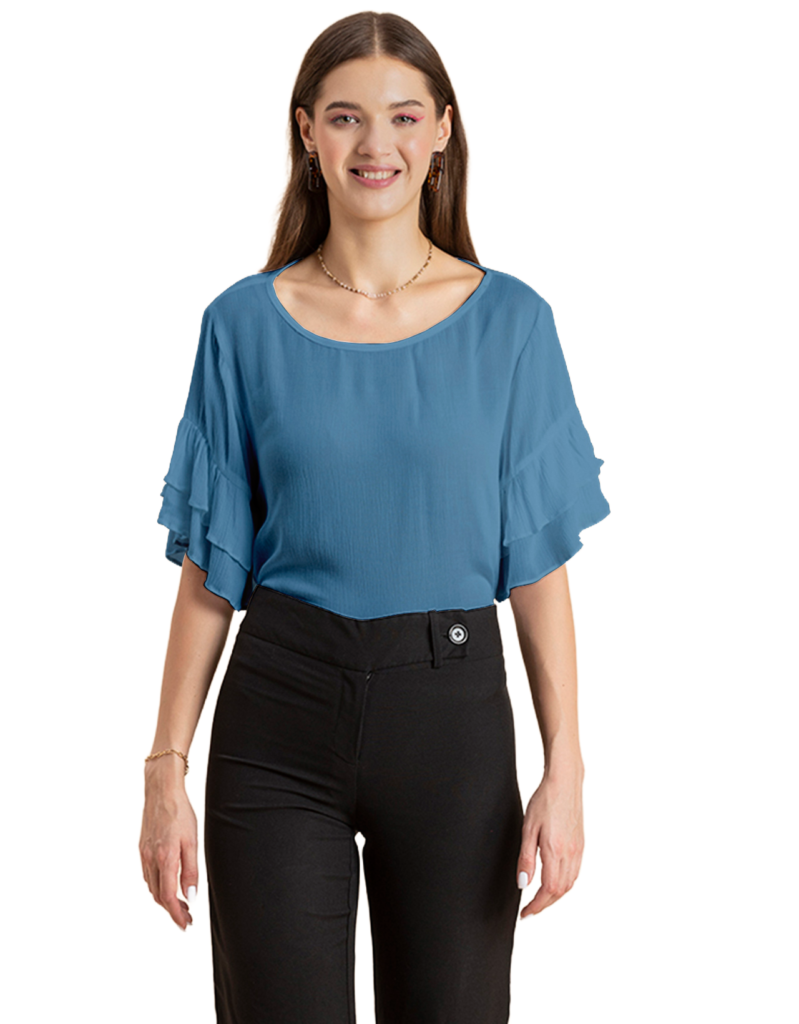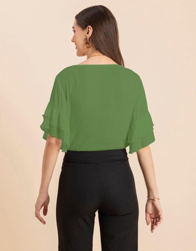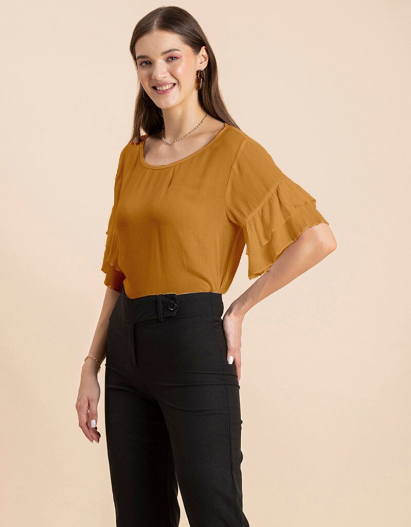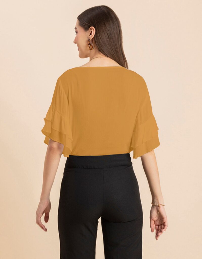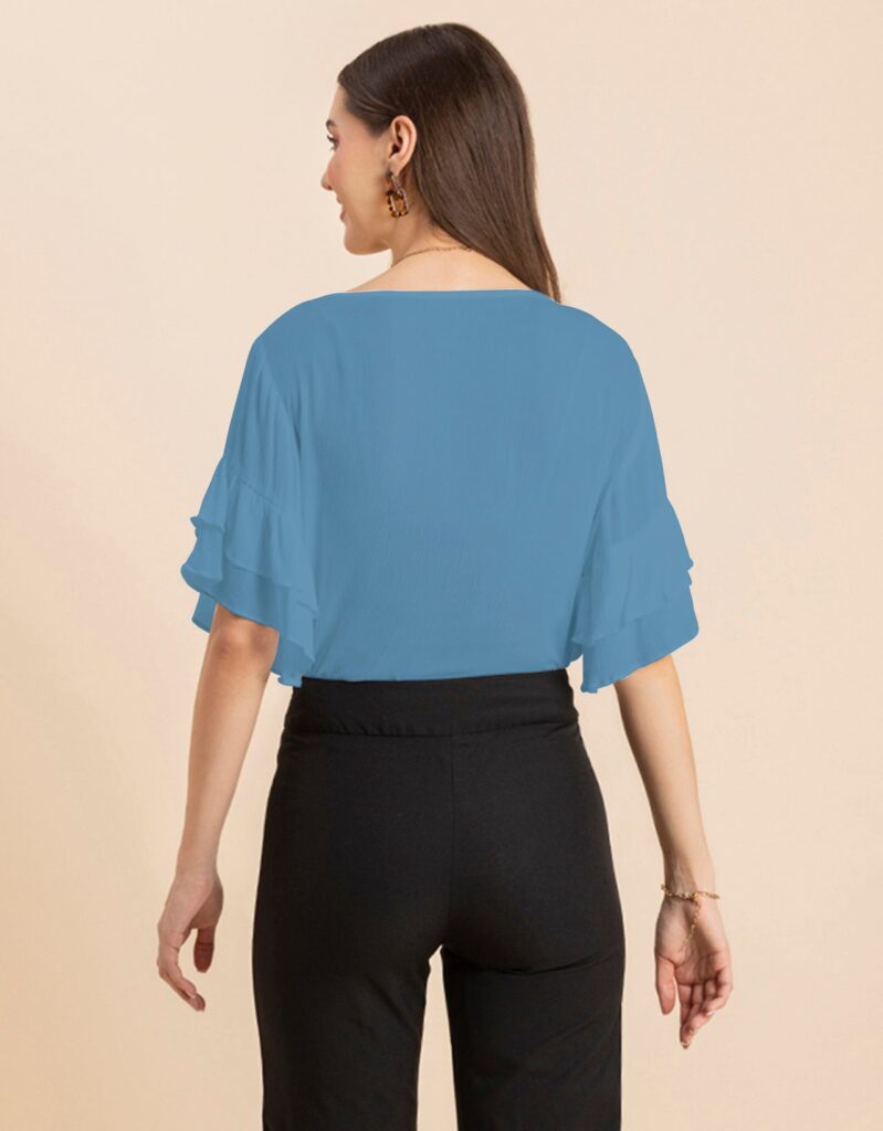 Solid Ruffled Bell Sleeve Top