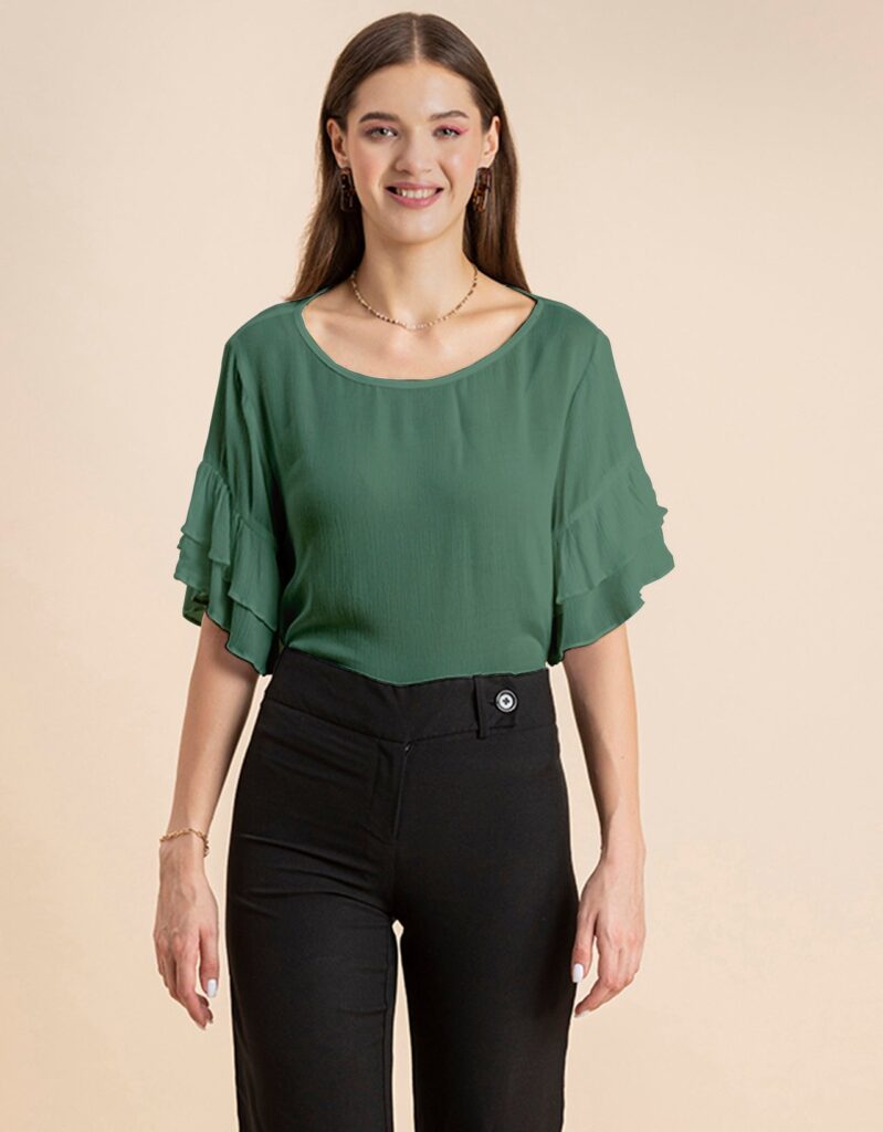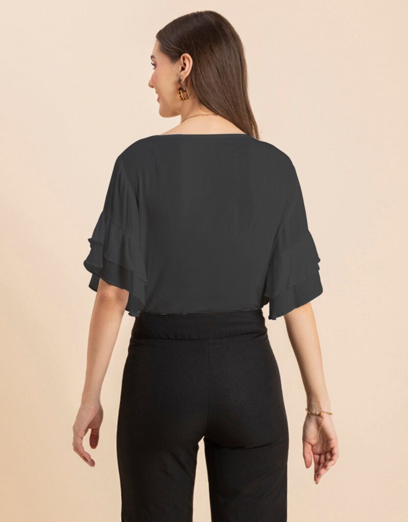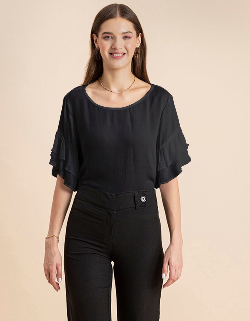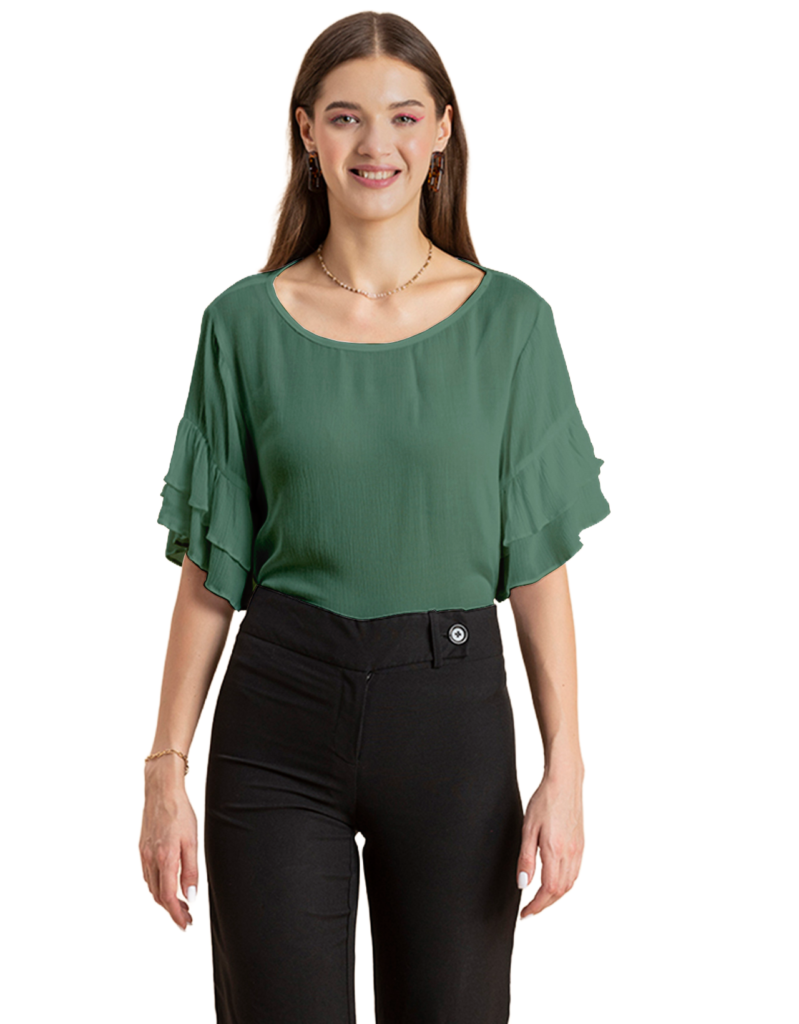 Solid Ruffled Bell Sleeve Top