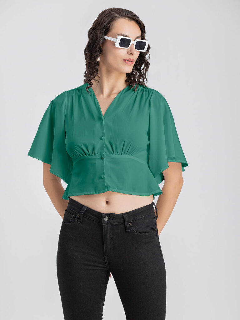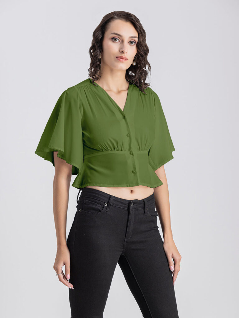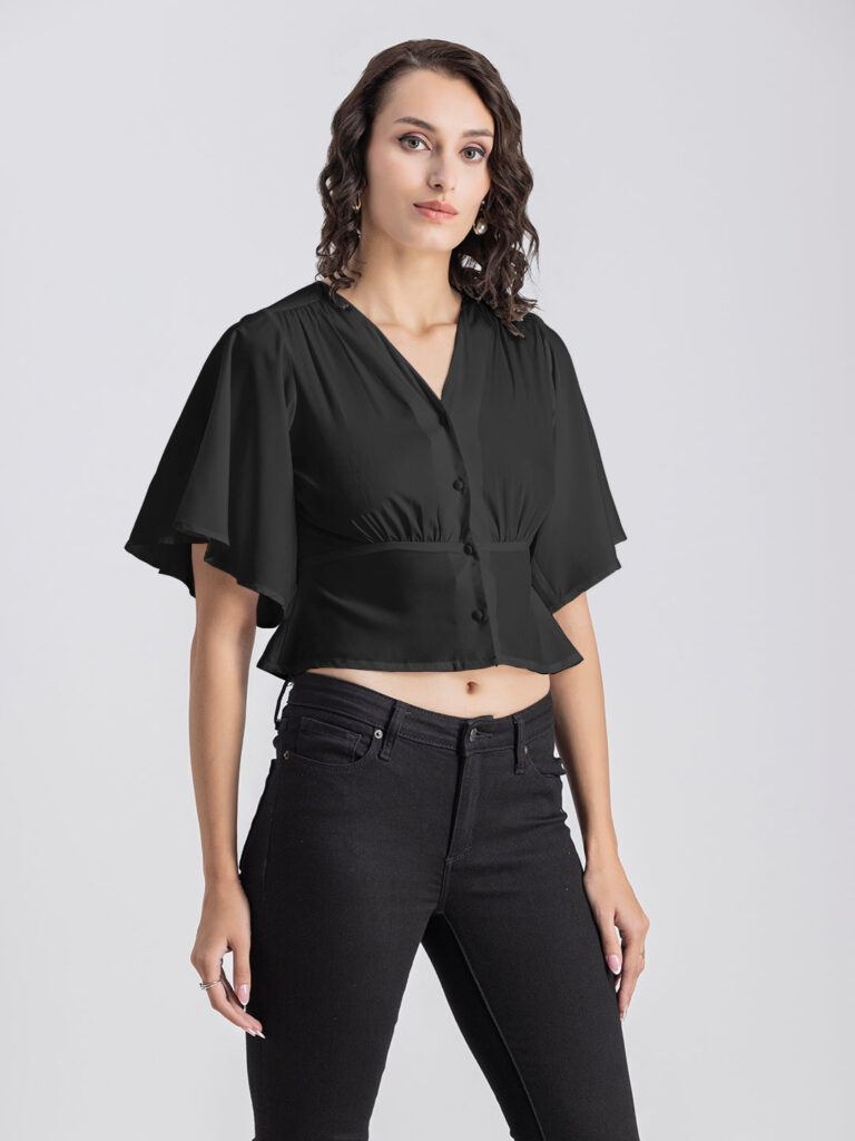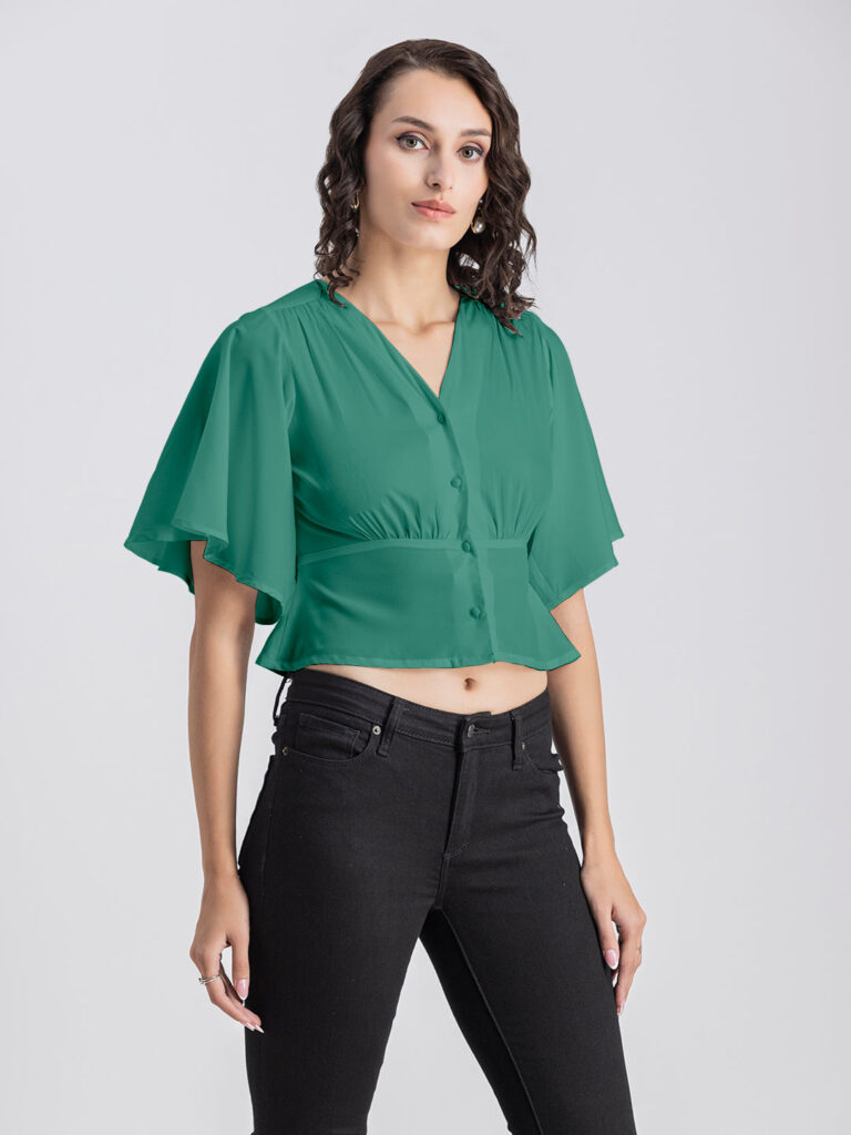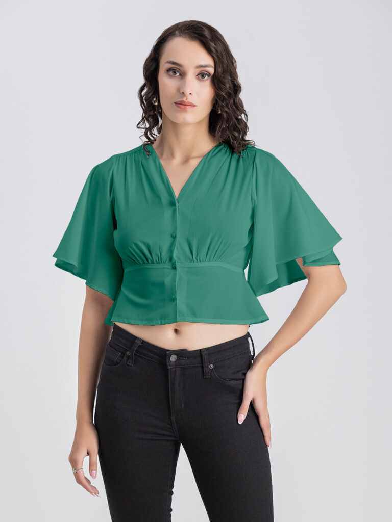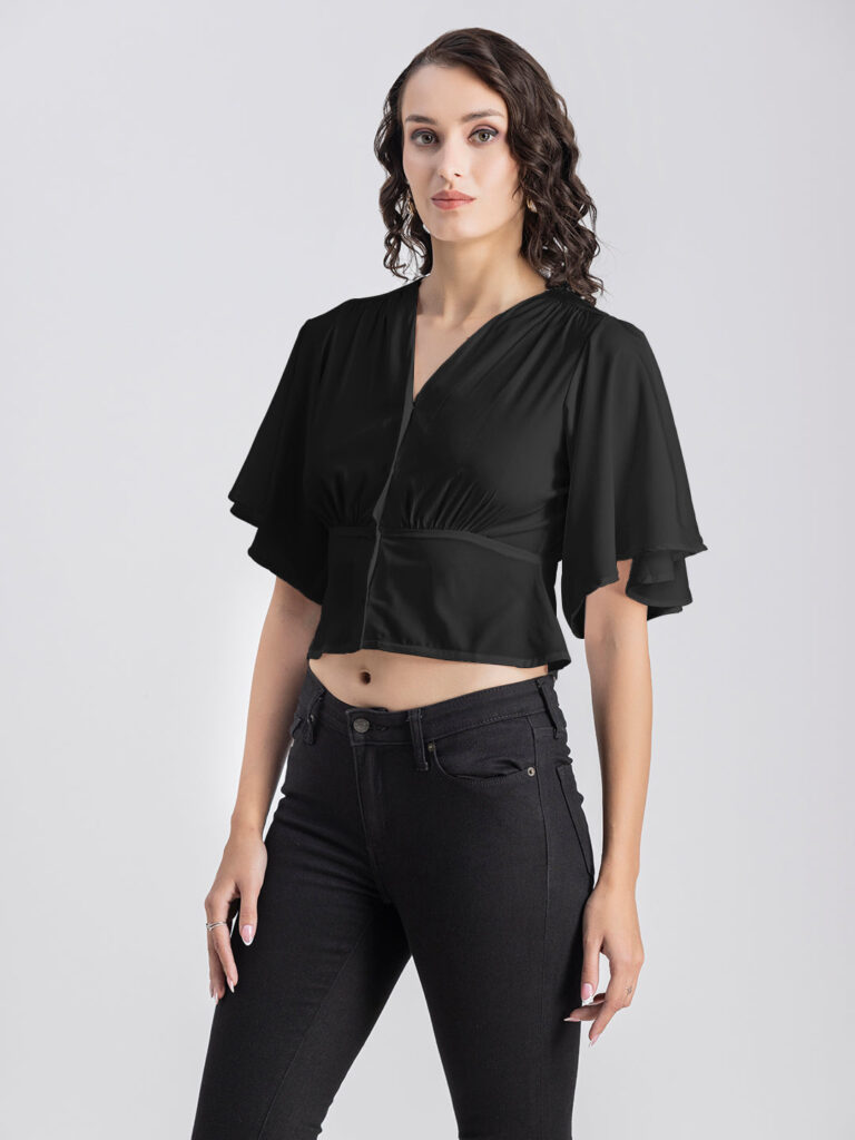 Tags: Solid Tops For Women, Flared Sleeves Tops For Women, Cute Tops For Women, Pretty Tops For Women, V Neck Tops For Women, Crop Tops For Women, Summer Tops For Women