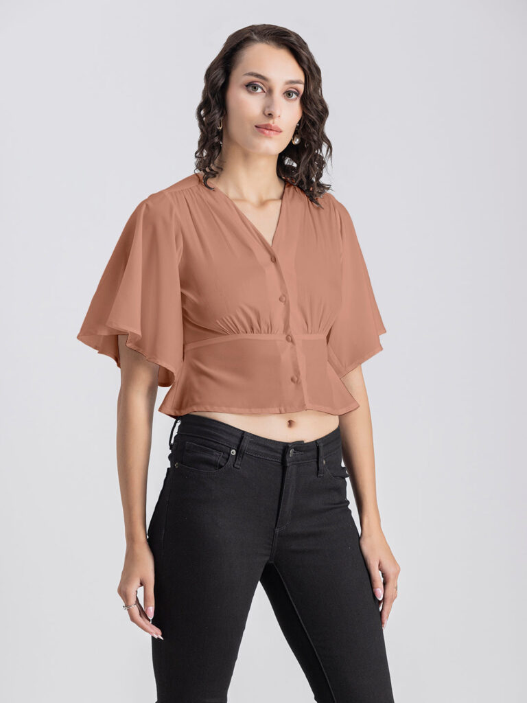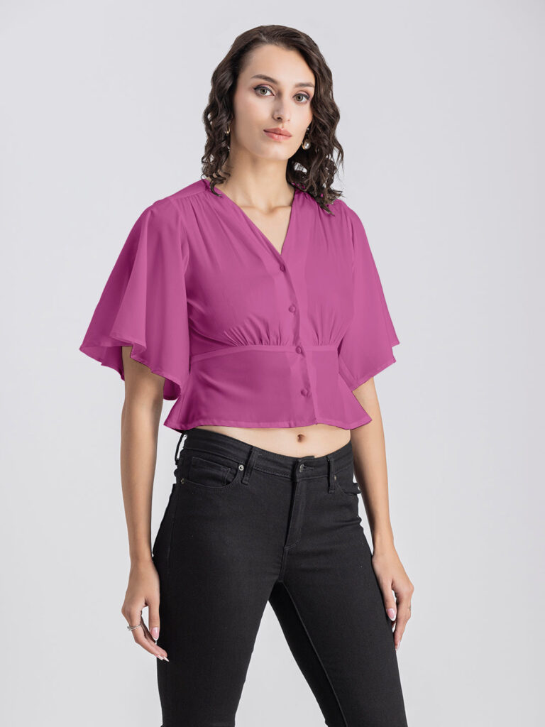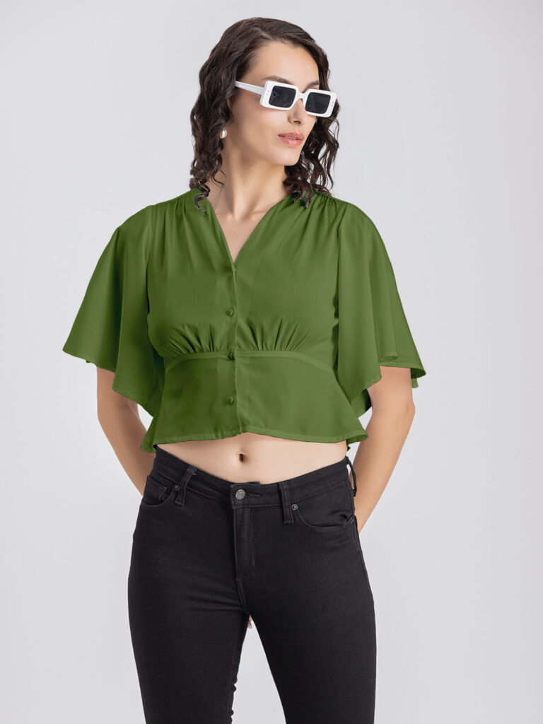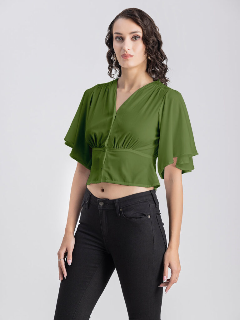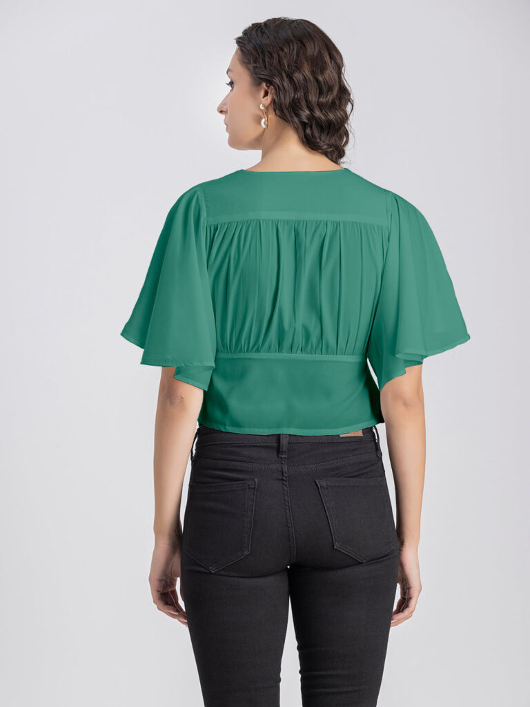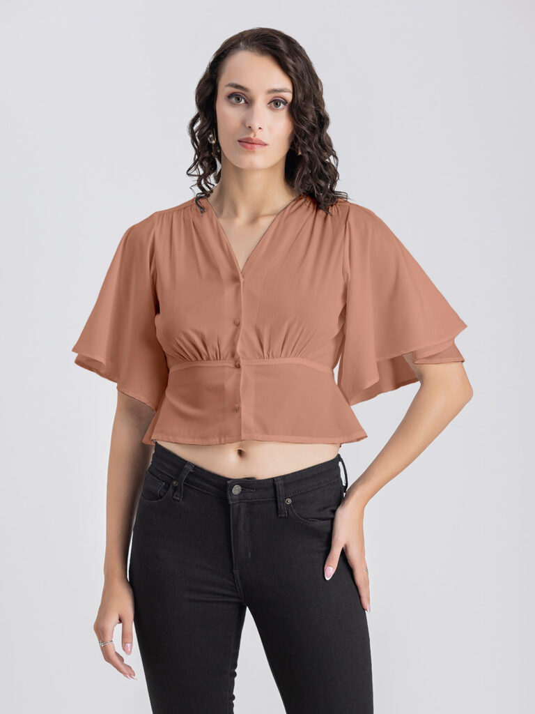 Tags: Solid Tops For Women, Flared Sleeves Tops For Women, Cute Tops For Women, Pretty Tops For Women, V Neck Tops For Women, Crop Tops For Women, Summer Tops For Women