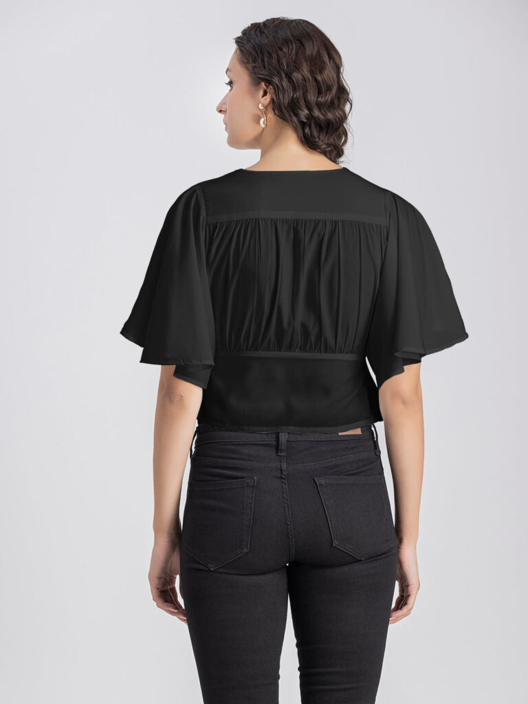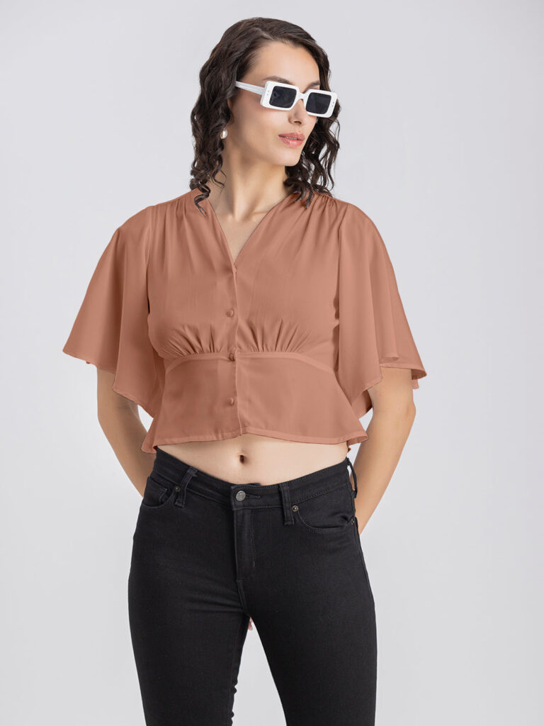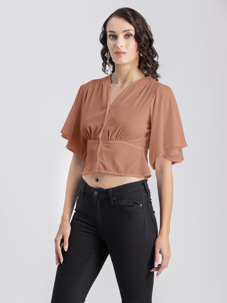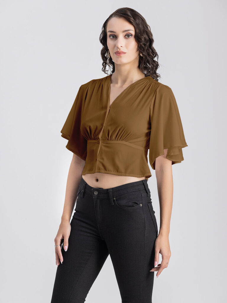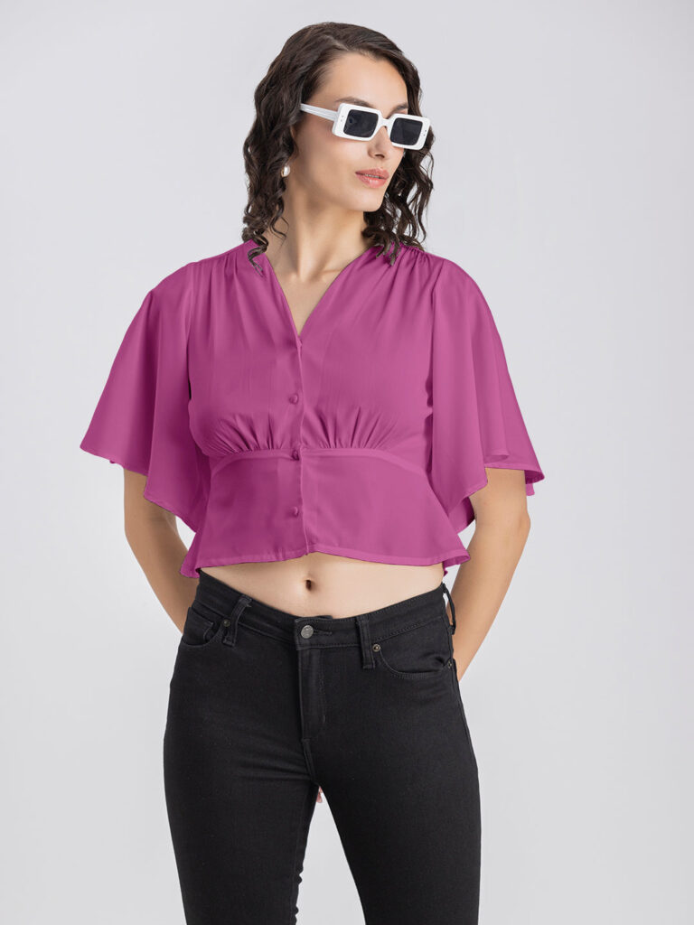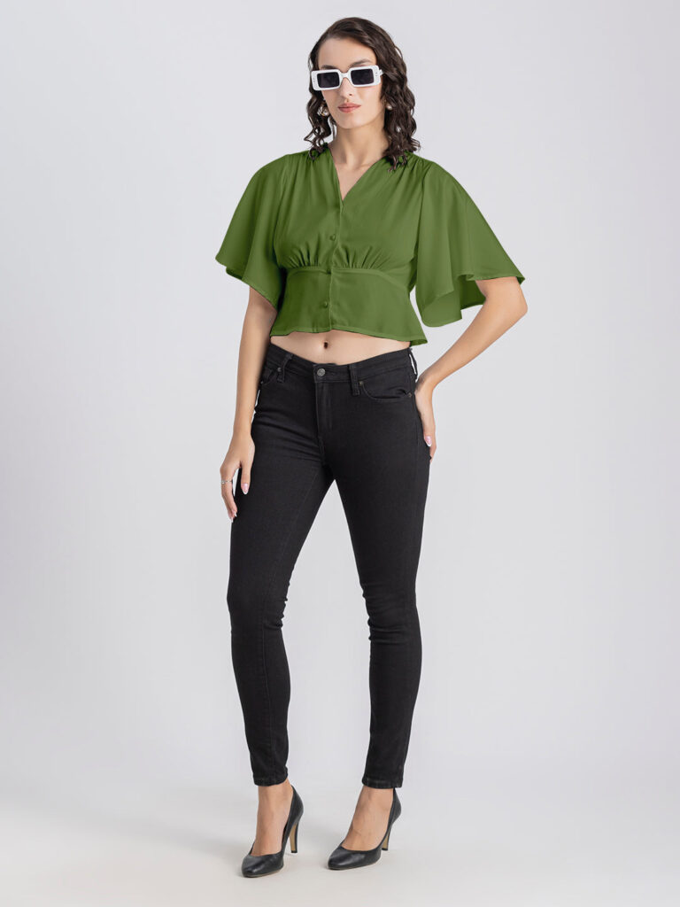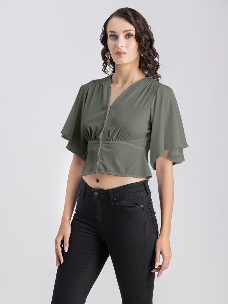 Tags: Solid Tops For Women, Flared Sleeves Tops For Women, Cute Tops For Women, Pretty Tops For Women, V Neck Tops For Women, Crop Tops For Women, Summer Tops For Women