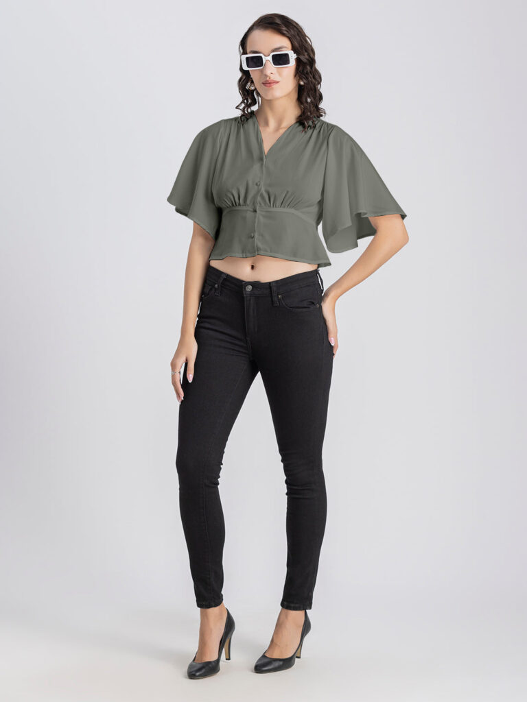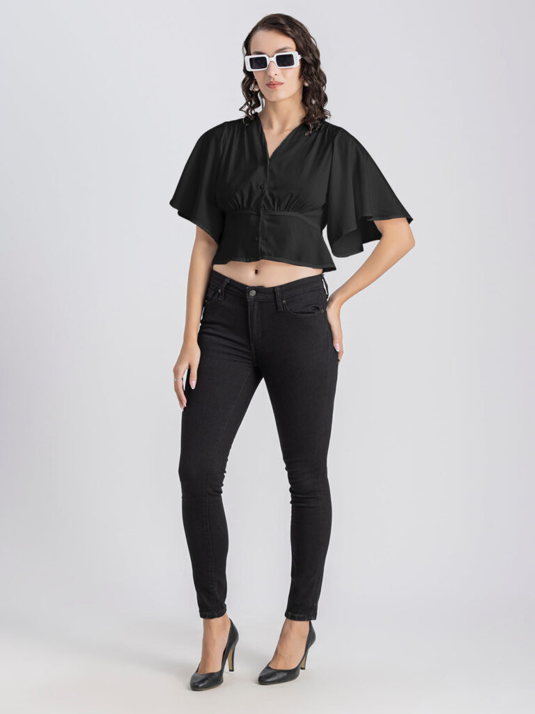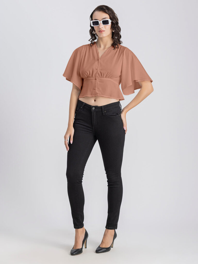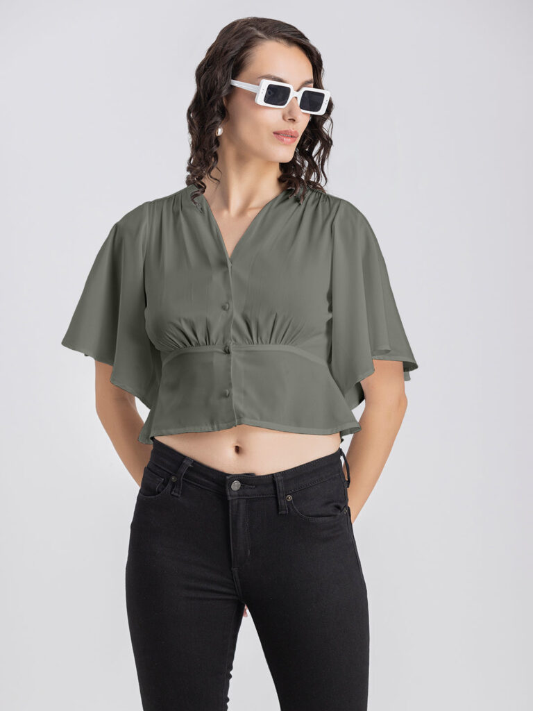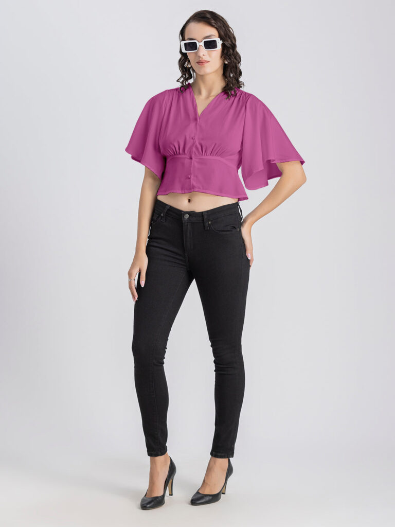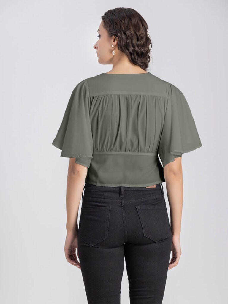 Tags: Solid Tops For Women, Flared Sleeves Tops For Women, Cute Tops For Women, Pretty Tops For Women, V Neck Tops For Women, Crop Tops For Women, Summer Tops For Women