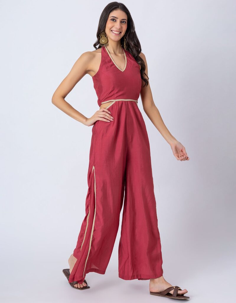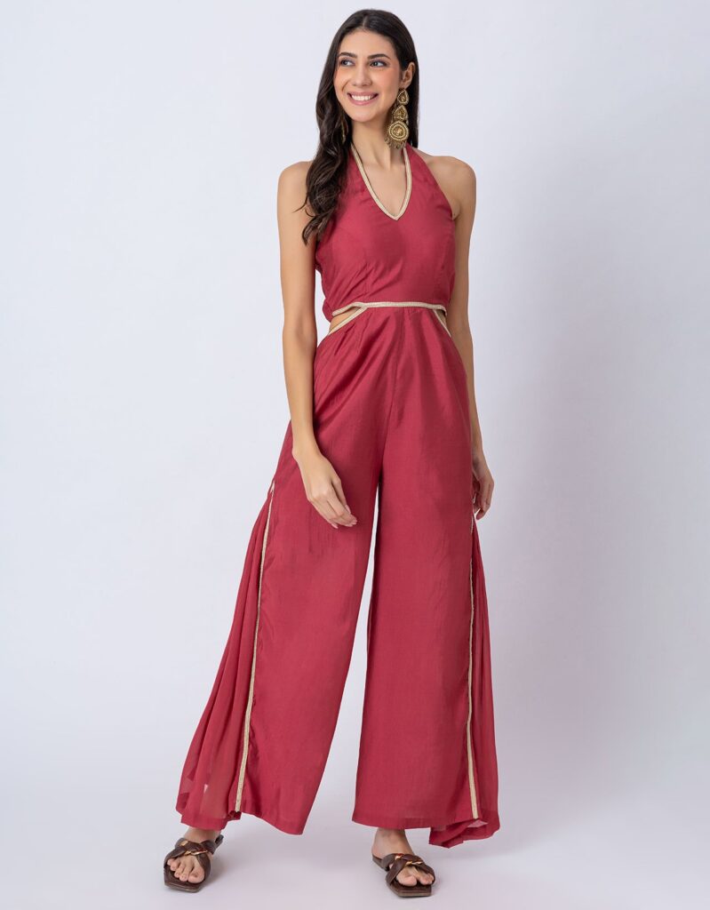 Solid Wide-Leg Jumpsuit Indo-Western Fusion Party Wear for Womenshop