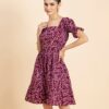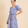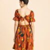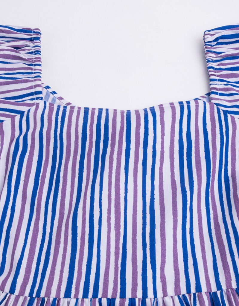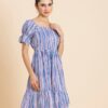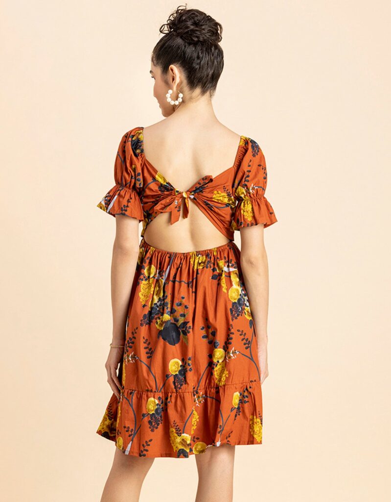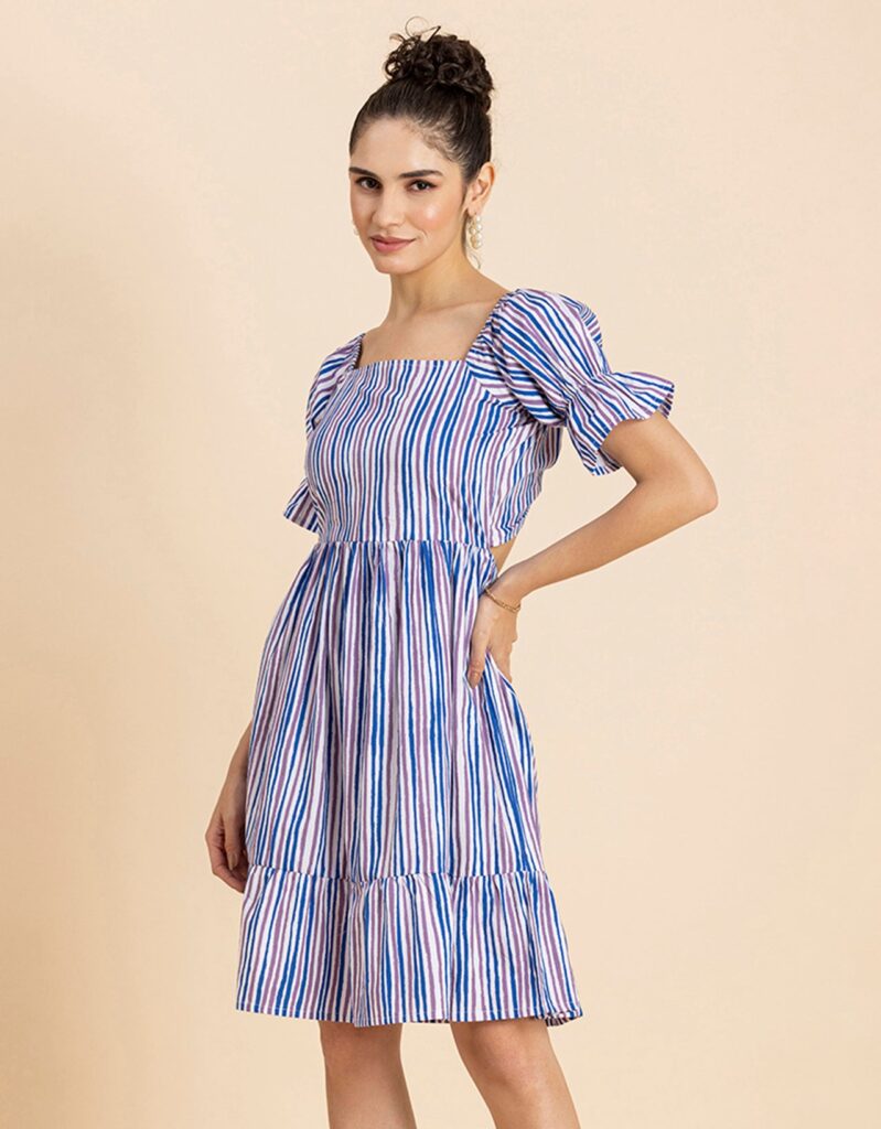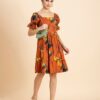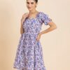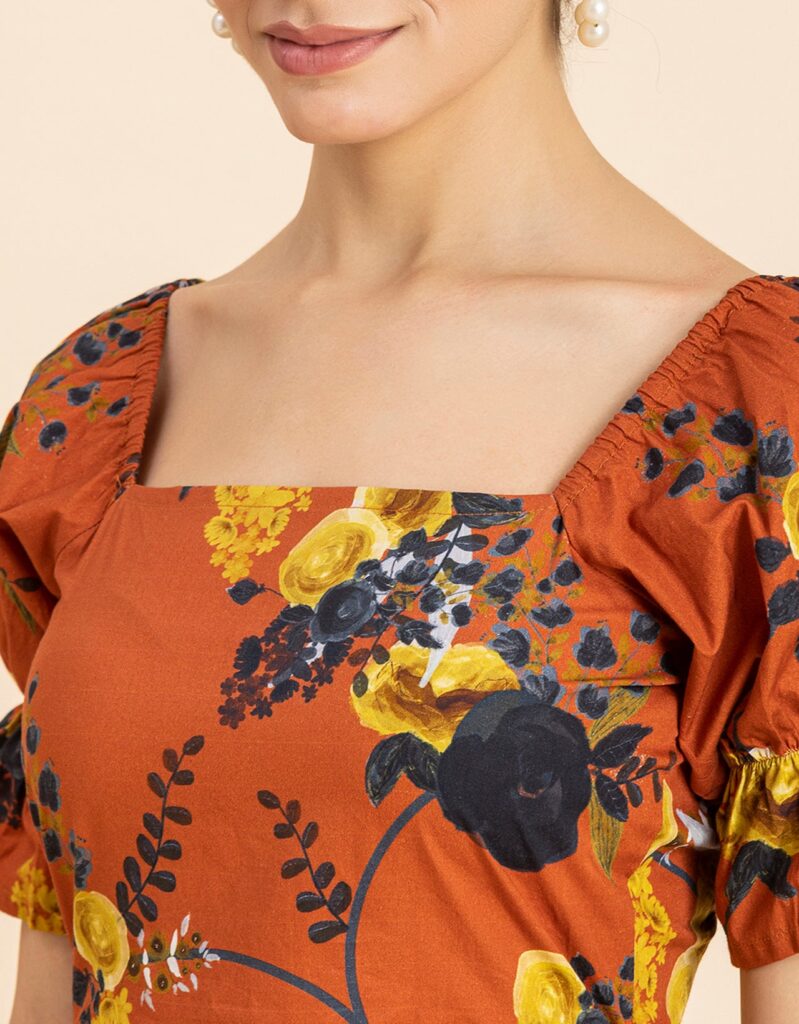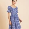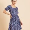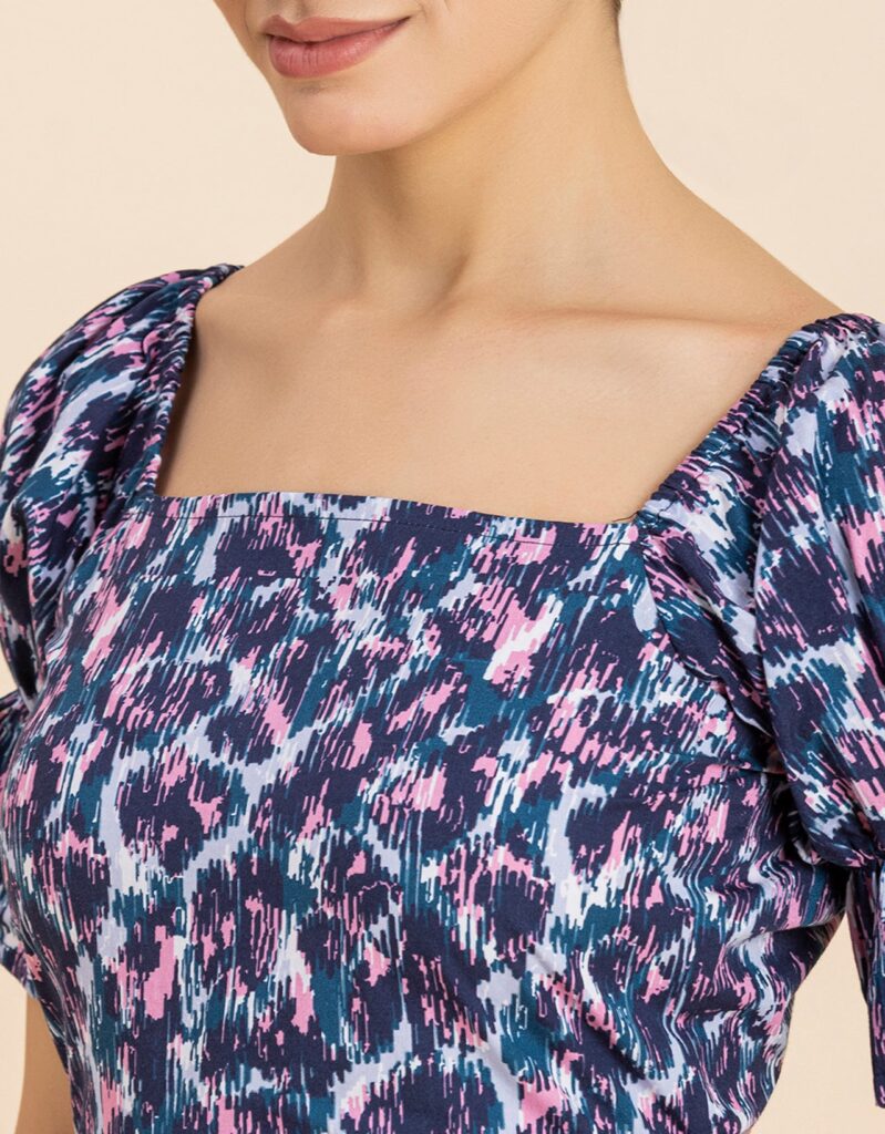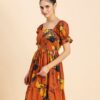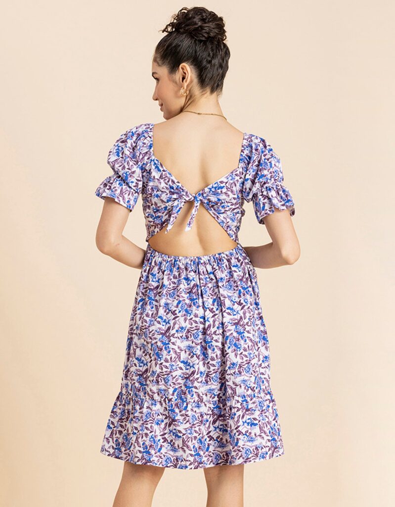Features: Square Neck, Short Puffed Sleeves, Tiered Hem, Knee Length, Lightweight And All Over Printed Pattern