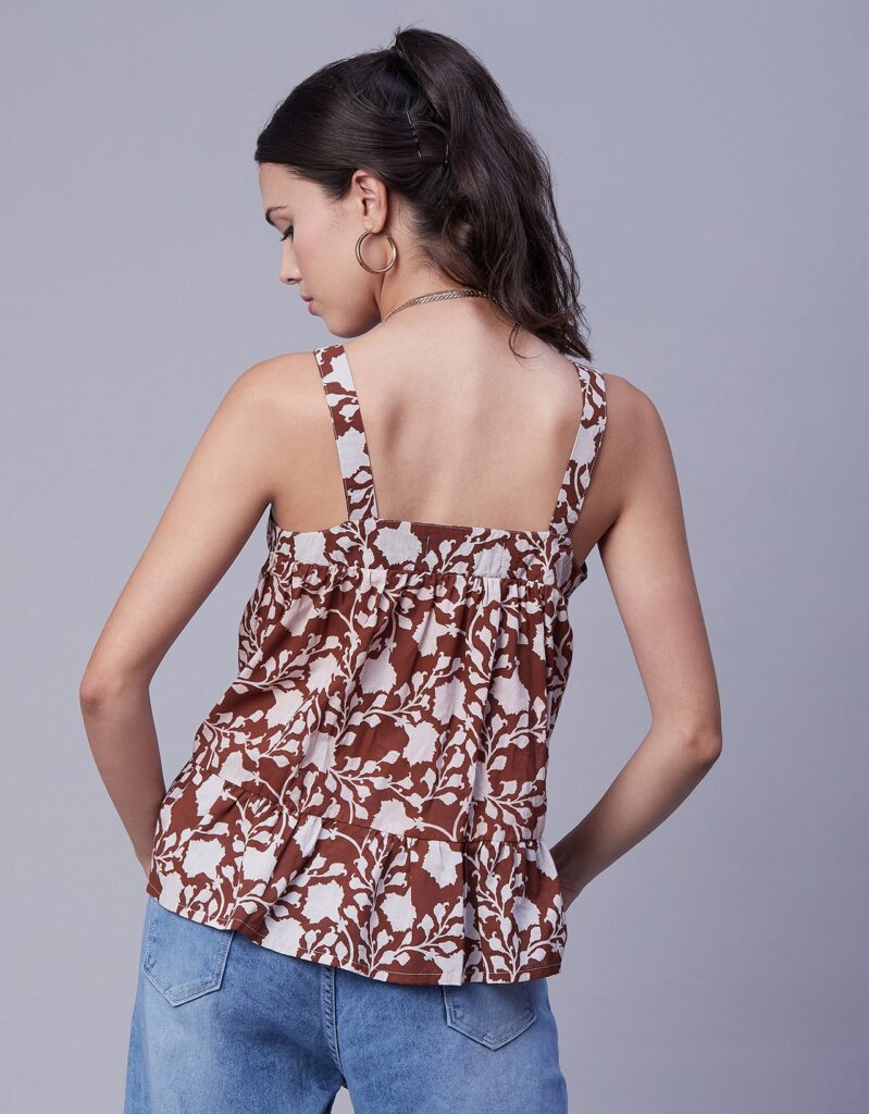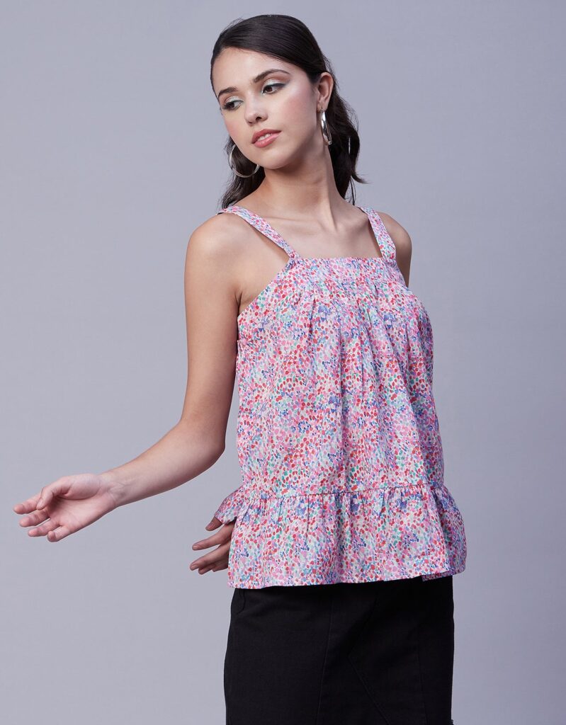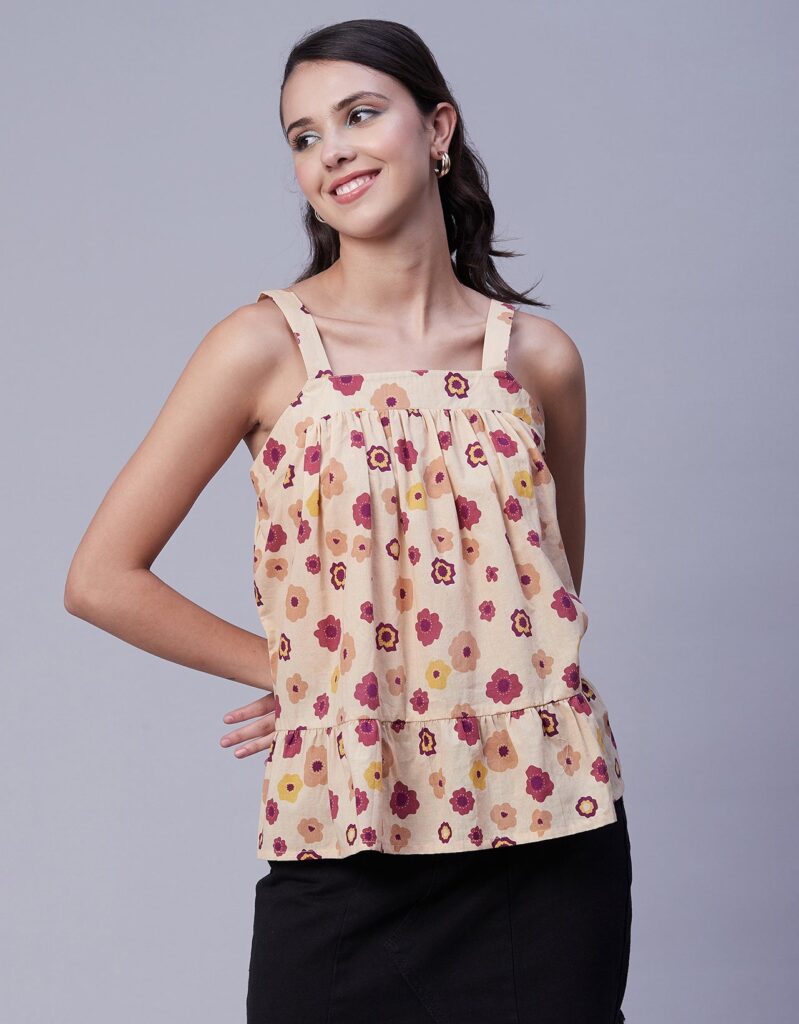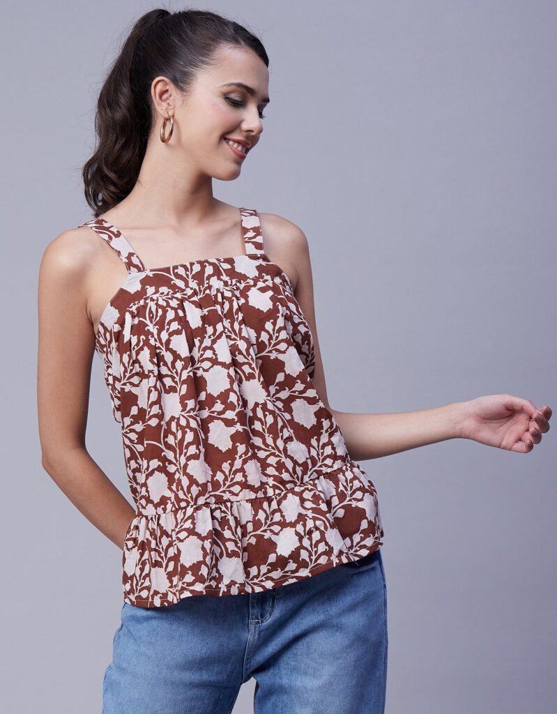 Tags: Printed Tops For Women, Square Neck Tops For Women, Sleeveless Tops For Women, Ruffled Hem Tops For Women, Waist Length Tops For Women, Strappy Shoulders Tops For Women, Vacation Wear 2023, Resort Wear, Beach Tops, Summer Tops