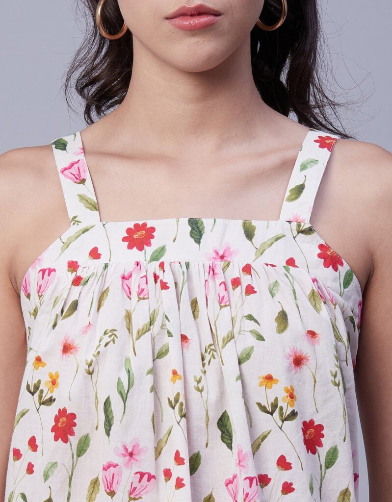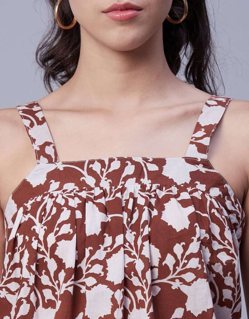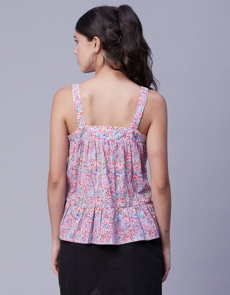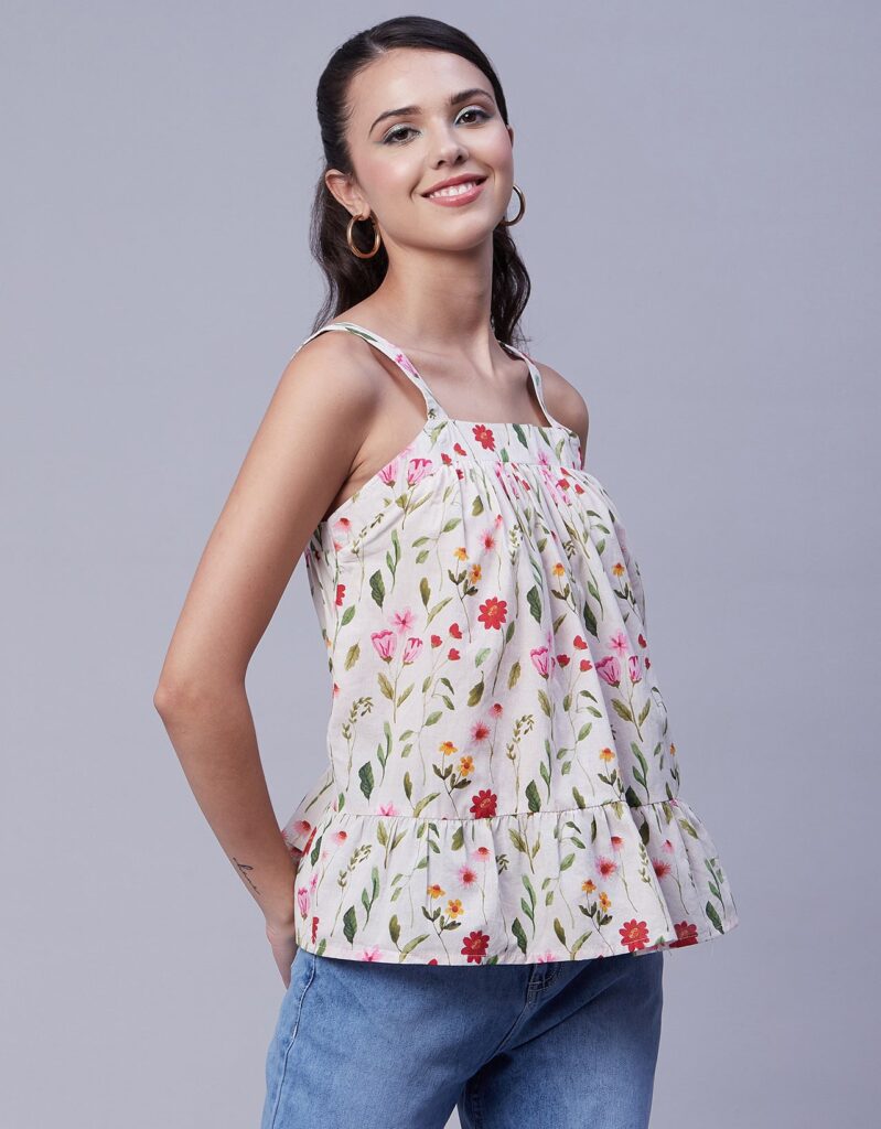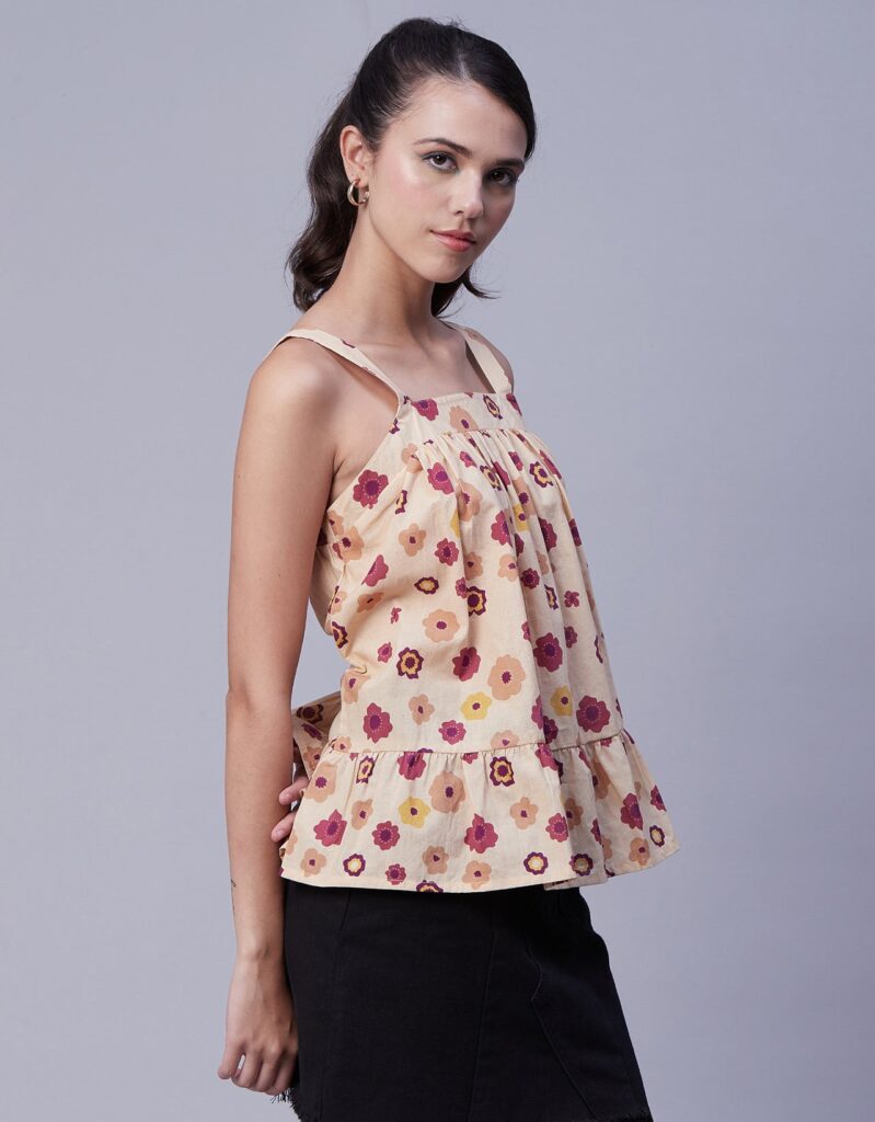 Tags: Printed Tops For Women, Square Neck Tops For Women, Sleeveless Tops For Women, Ruffled Hem Tops For Women, Waist Length Tops For Women, Strappy Shoulders Tops For Women, Vacation Wear 2023, Resort Wear, Beach Tops, Summer Tops
