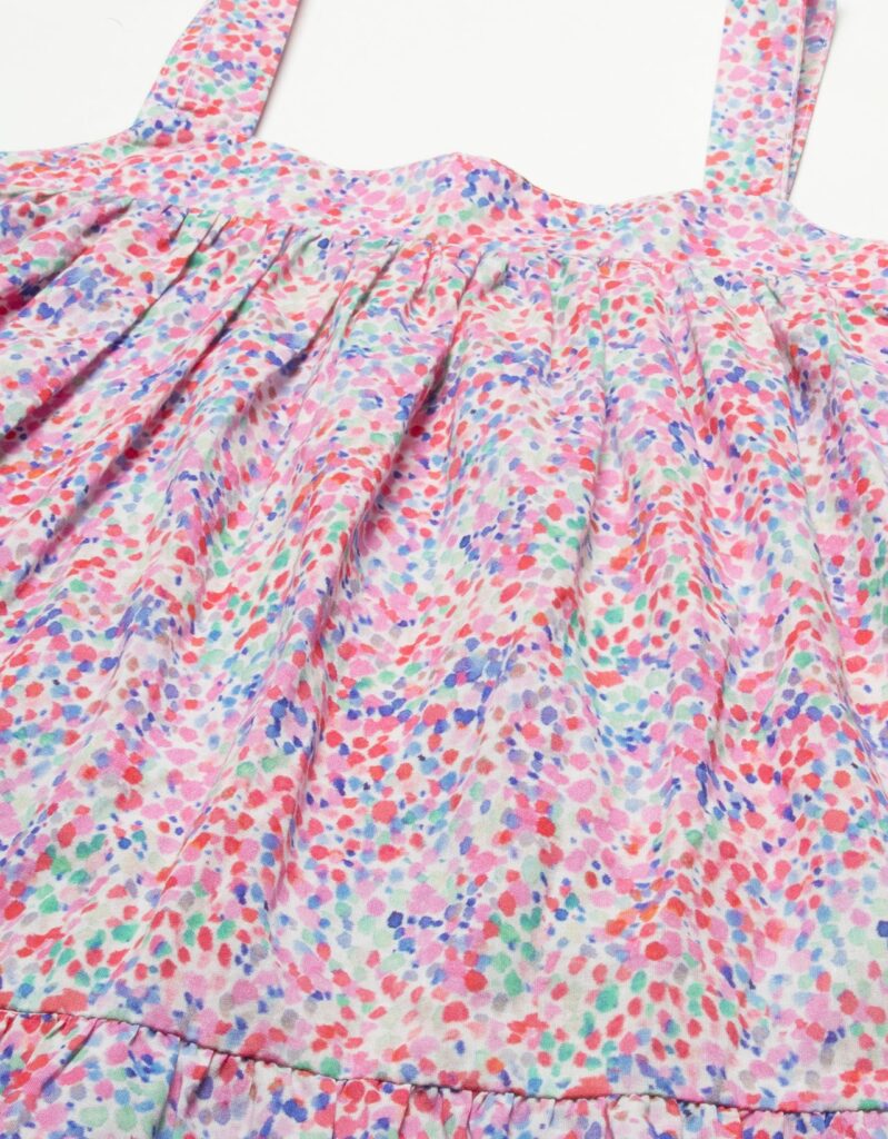 Features: Sleeveless, Ruffled Hem, Strappy Shoulders, Smocked Square Neck, Waist Length, Lightweight And Printed Pattern