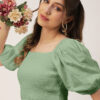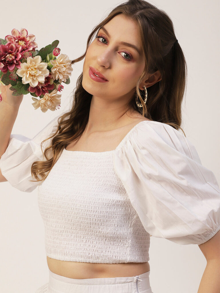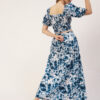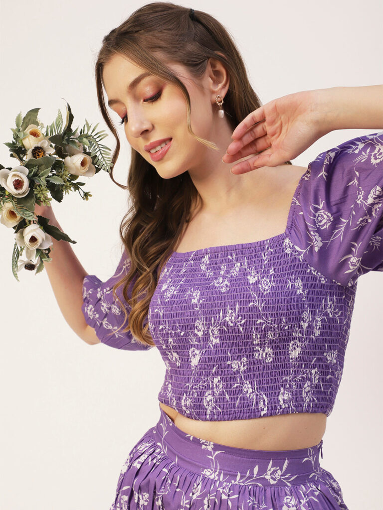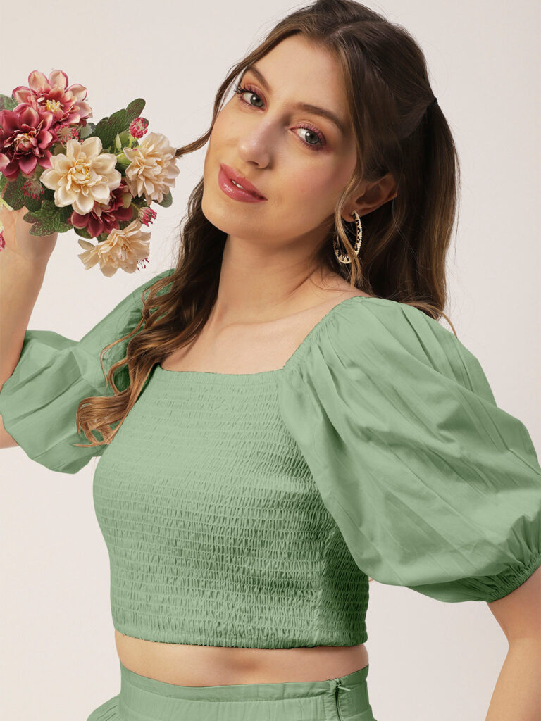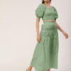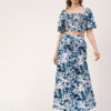 Features: square neck, elbow sleeves, crop top, ankle length, elastic waist, flared hem skirt, lightweight.