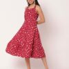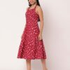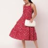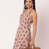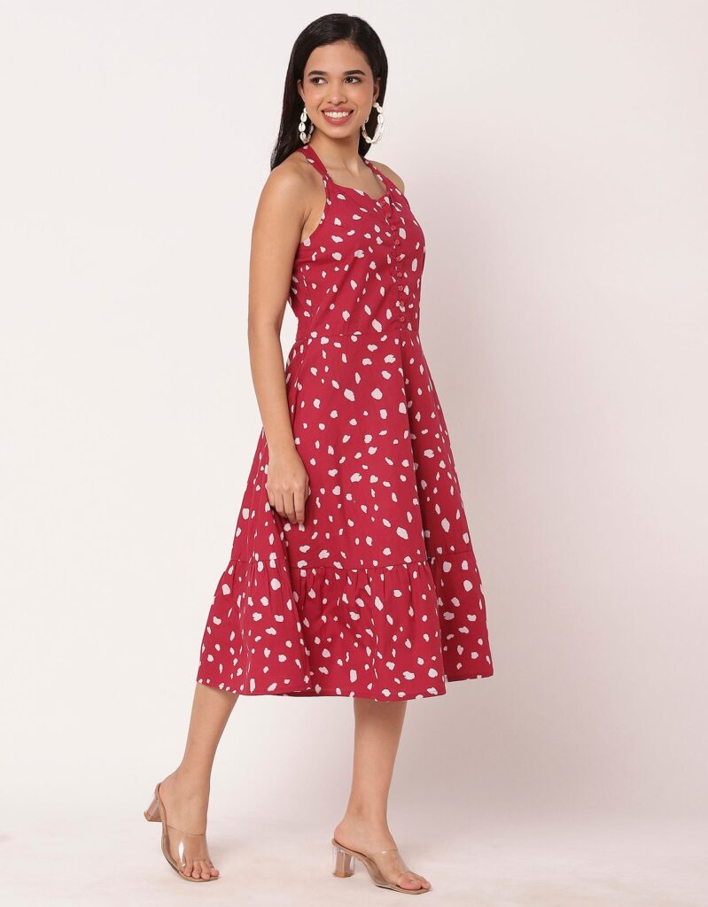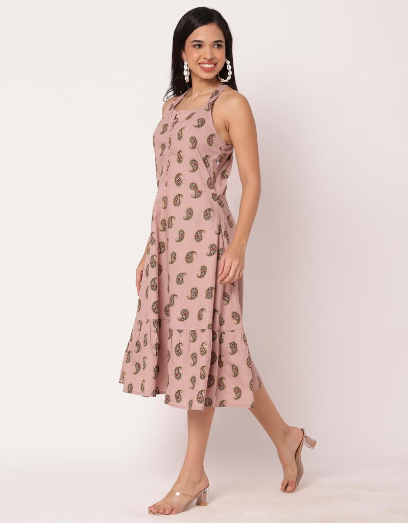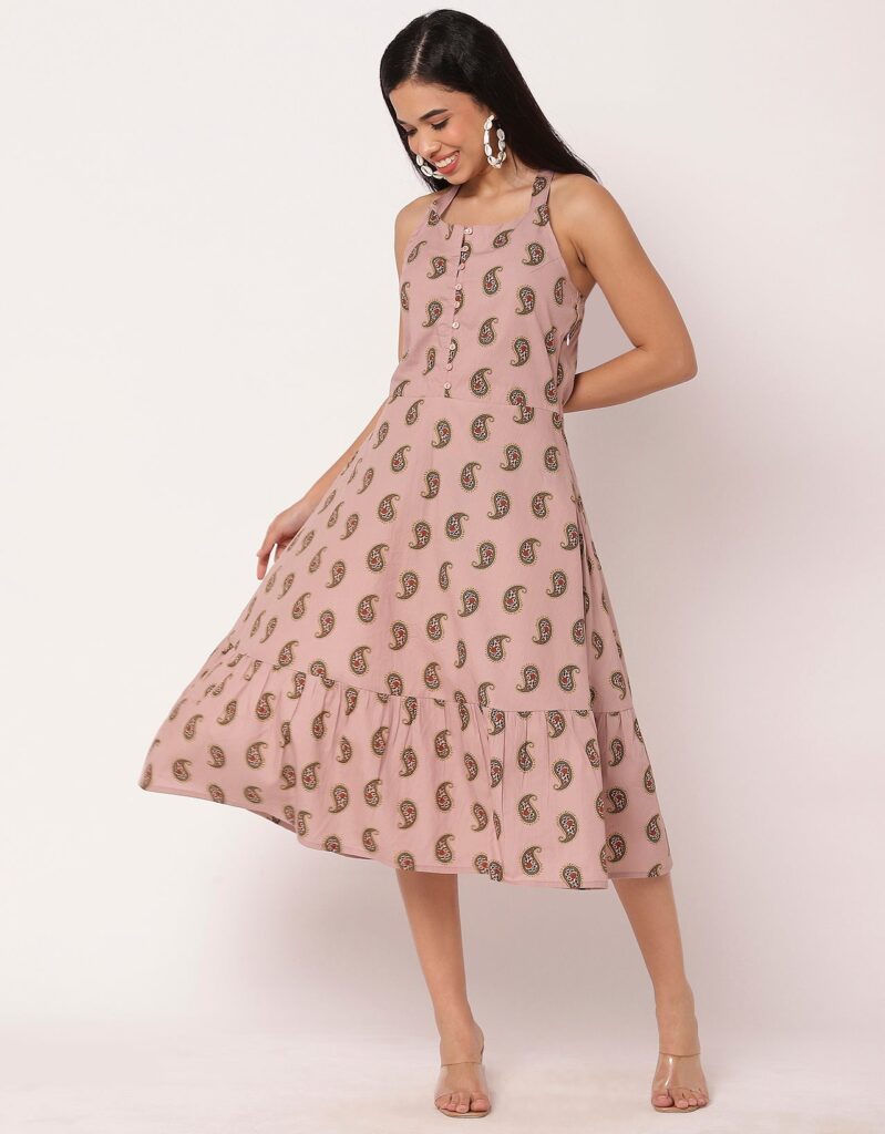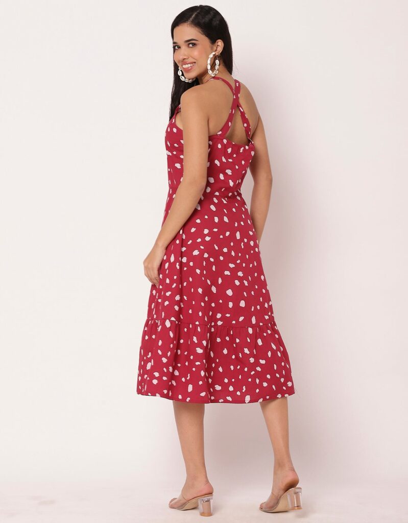 Features: Criss-cross back, sleeveless, tiered hem, knee length, lightweight and all over printed pattern