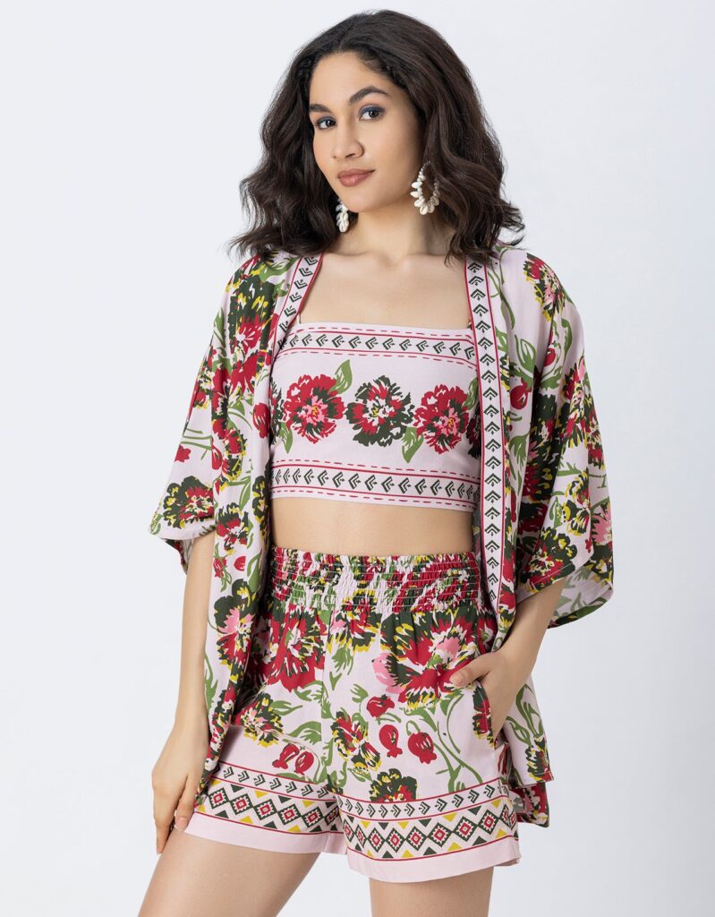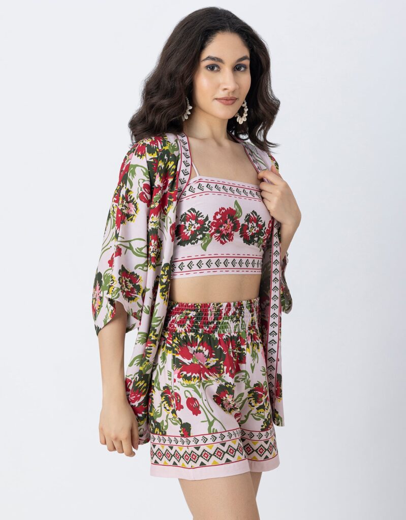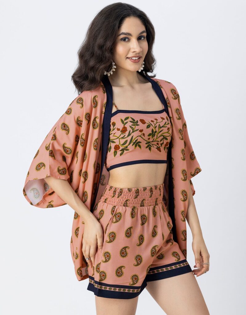 Tags: 3 Pcs Cord Set For Women, Printed Cord Set, Beach Wear Cord Set For Women, Women Cord Sets For Vacation, Resort Wear Outfit.