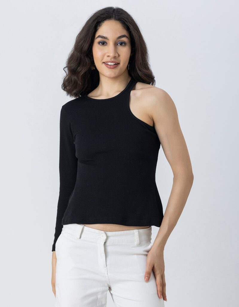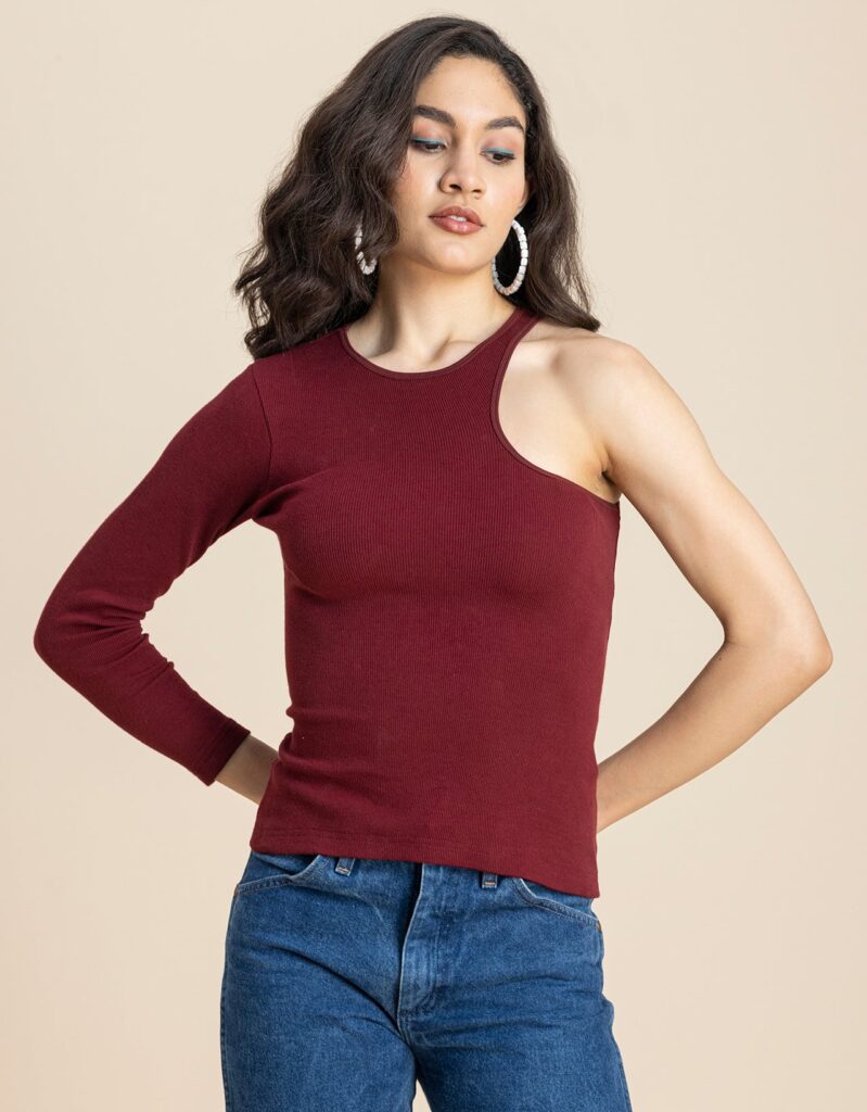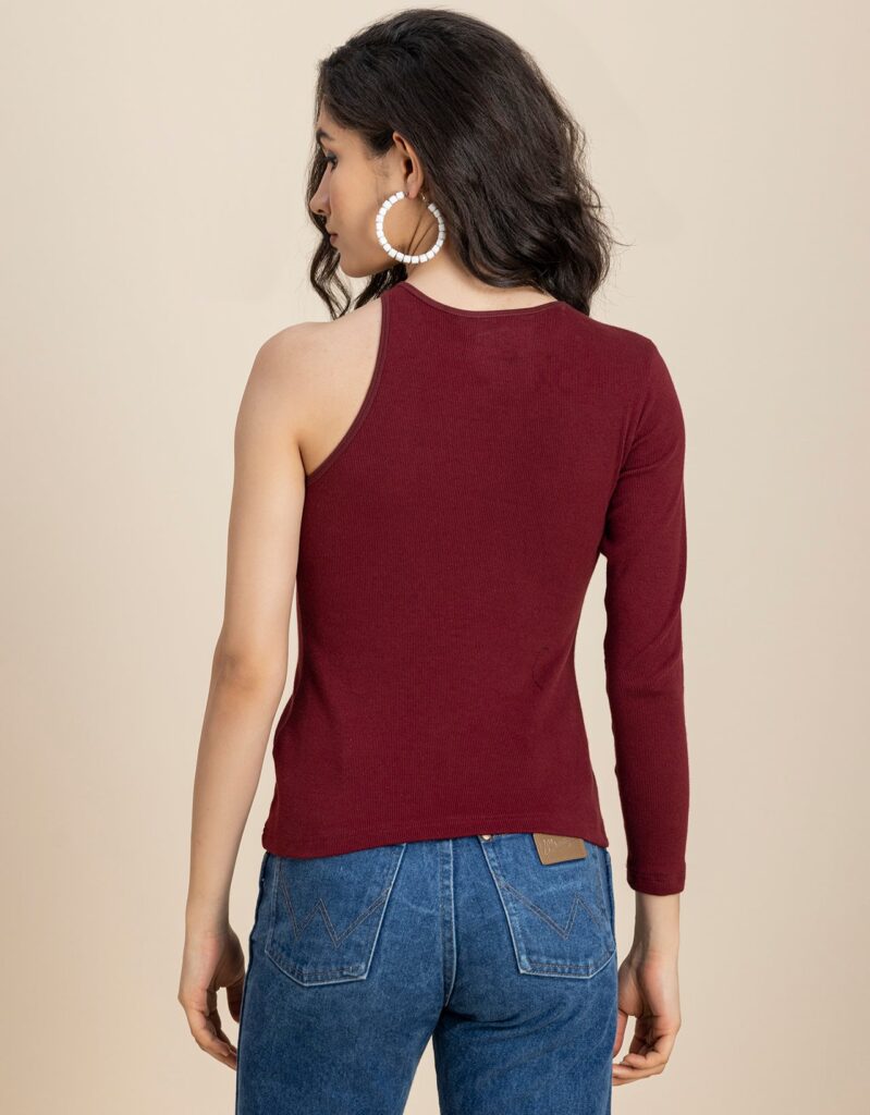 Tags: Knit Tops For Women, One Shoulder Tops For Women, Casual Tops For Women, Designer Tshirt Tops, Fitted Knit Tops,