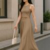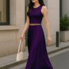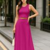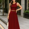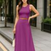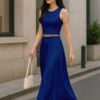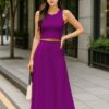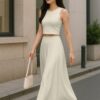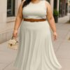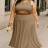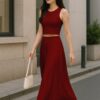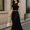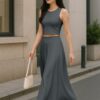 Elegant 2 Piece Set: Includes a sleeveless crop top and a high-rise maxi skirt – a stylish pairing for brunches, vacations, or casual summer events.