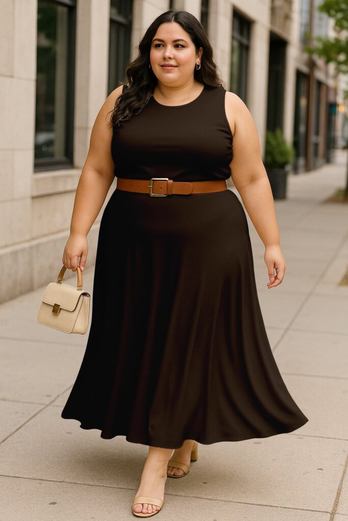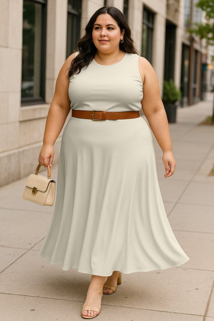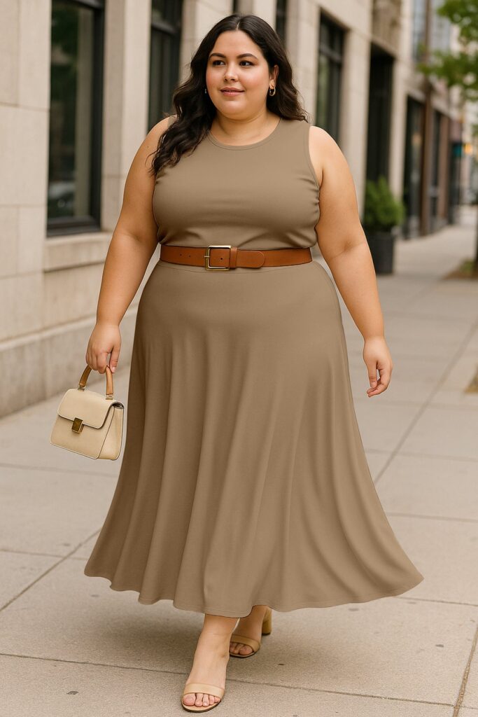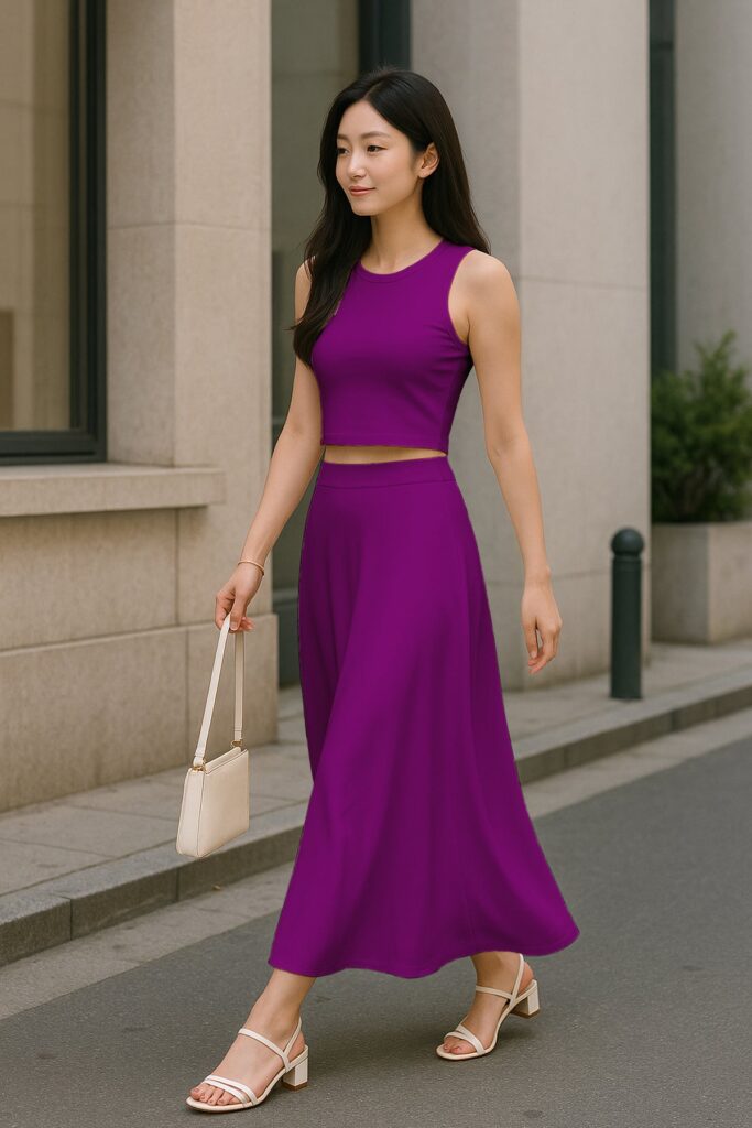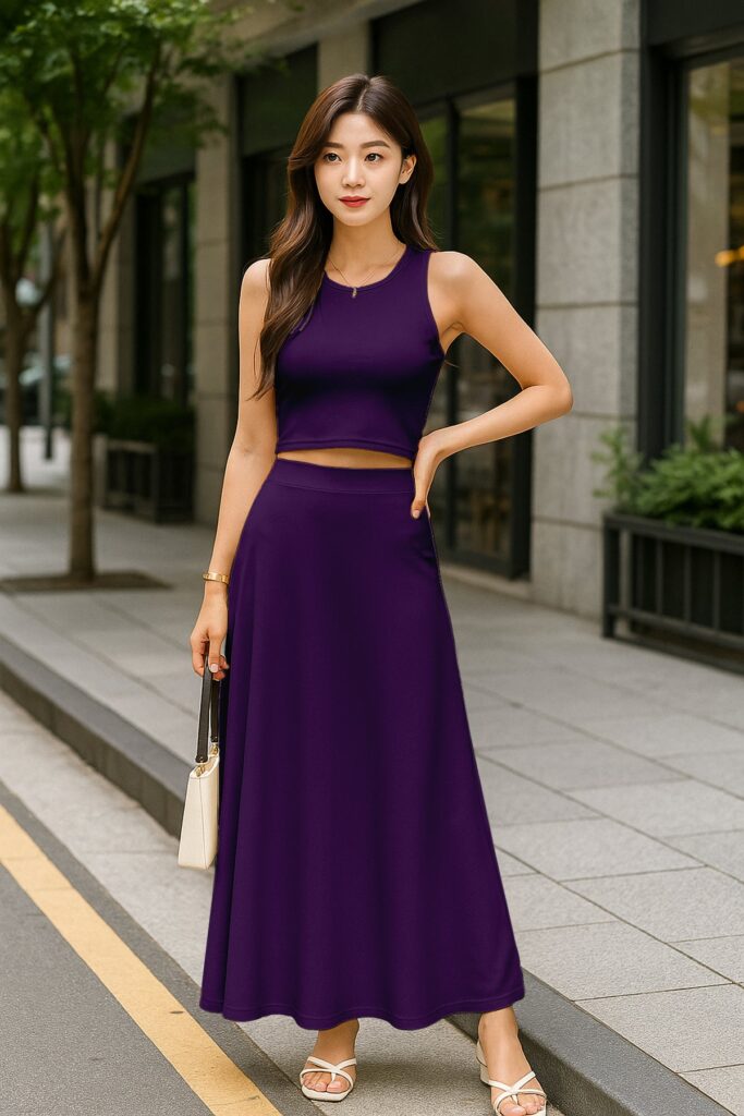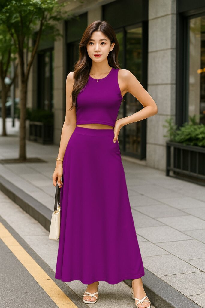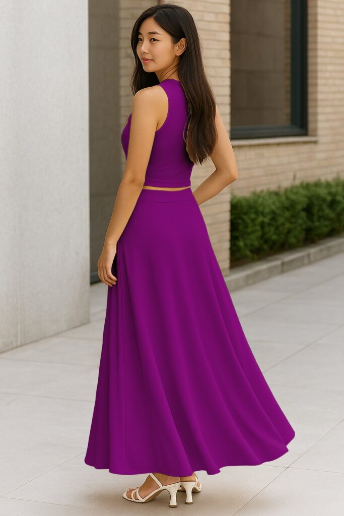 Chic Cropped Tank Top: The minimalist crop top balances the full-length skirt perfectly, creating an effortlessly feminine silhouette.