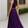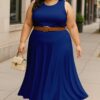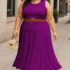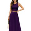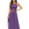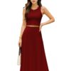 Women’s 2 Pcs Sleeveless Crop Top and High Waisted Flared Maxi Skirt