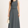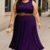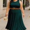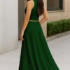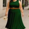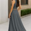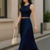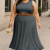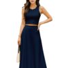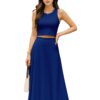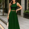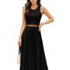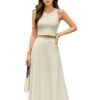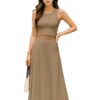 Women’s 2 Pcs Sleeveless Crop Top and High Waisted Flared Maxi Skirtshop