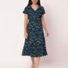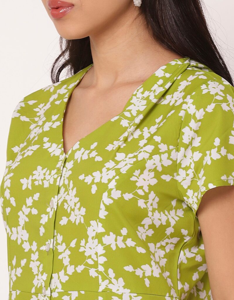 Women’s Printed Button Down Dress V Neck Dressshop