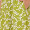 Features: V neck, front button down, side pocket, short sleeves, a line hem, knee length, lightweight and all over printed pattern