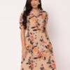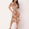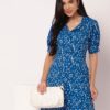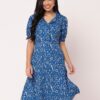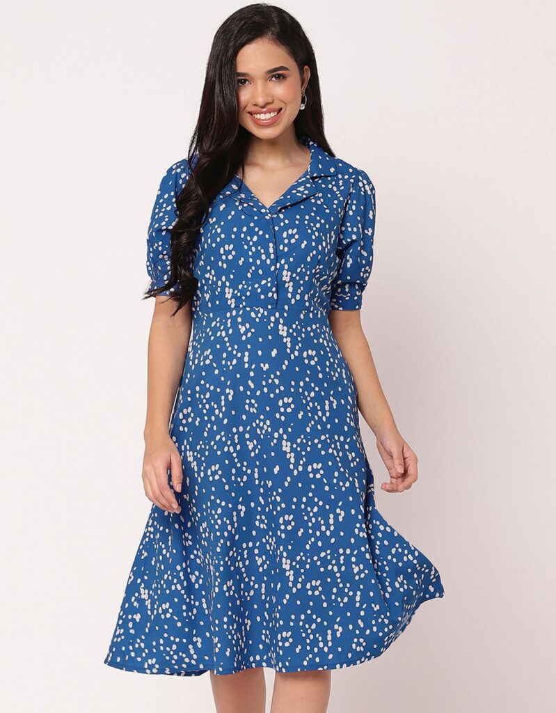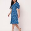 Women’s Printed Lapel Collar Puff Sleeves Dressshop