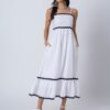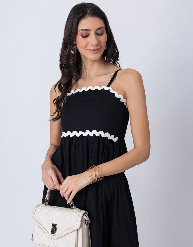 Features: Embrace summer style with this solid full-length cotton dress featuring zigzag lace details. The adjustable straps ensure a perfect fit, making it great for casual outings or beach days. Lightweight and breathable, this dress combines comfort and elegance effortlessly.