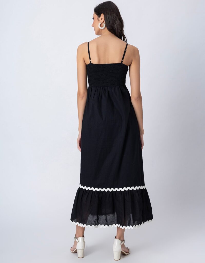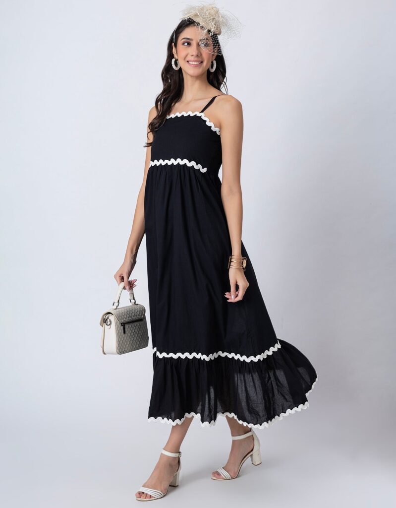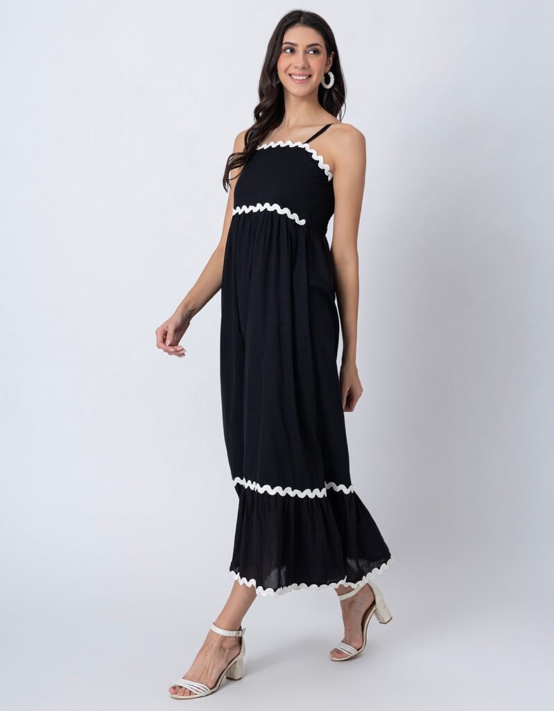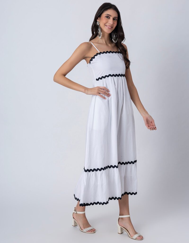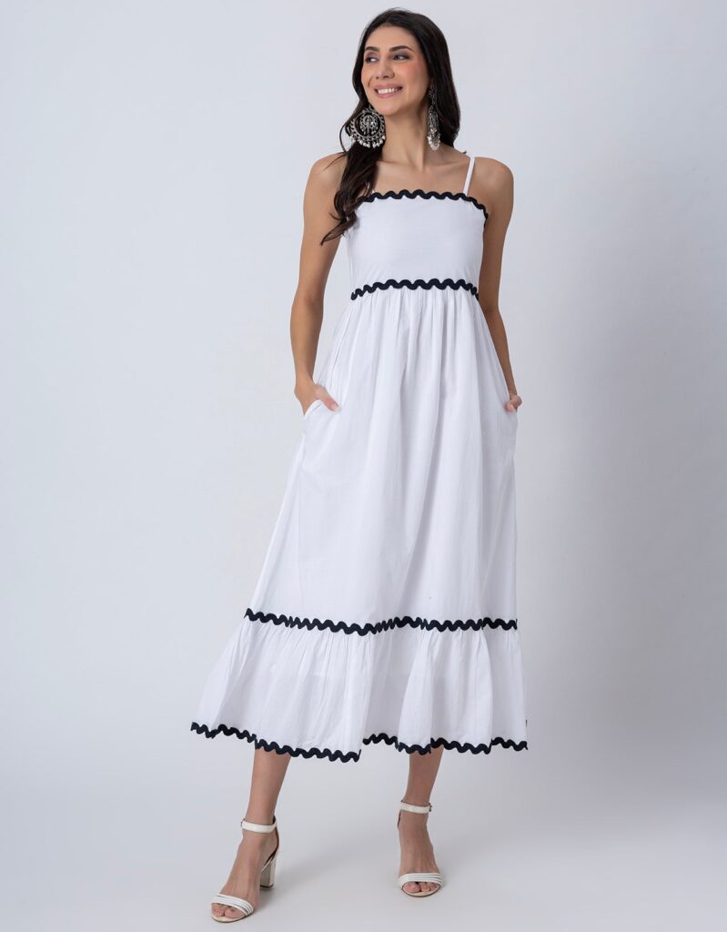 Women's Solid Full-Length Cotton Dress with Zigzag LaceWomen’s Solid Full-Length Cotton Dress with Zigzag Lace
