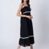 Women’s Solid Full-Length Cotton Dress with Zigzag Lace