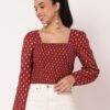 Women’s Square Neck Crop Long Sleeves Summer Top