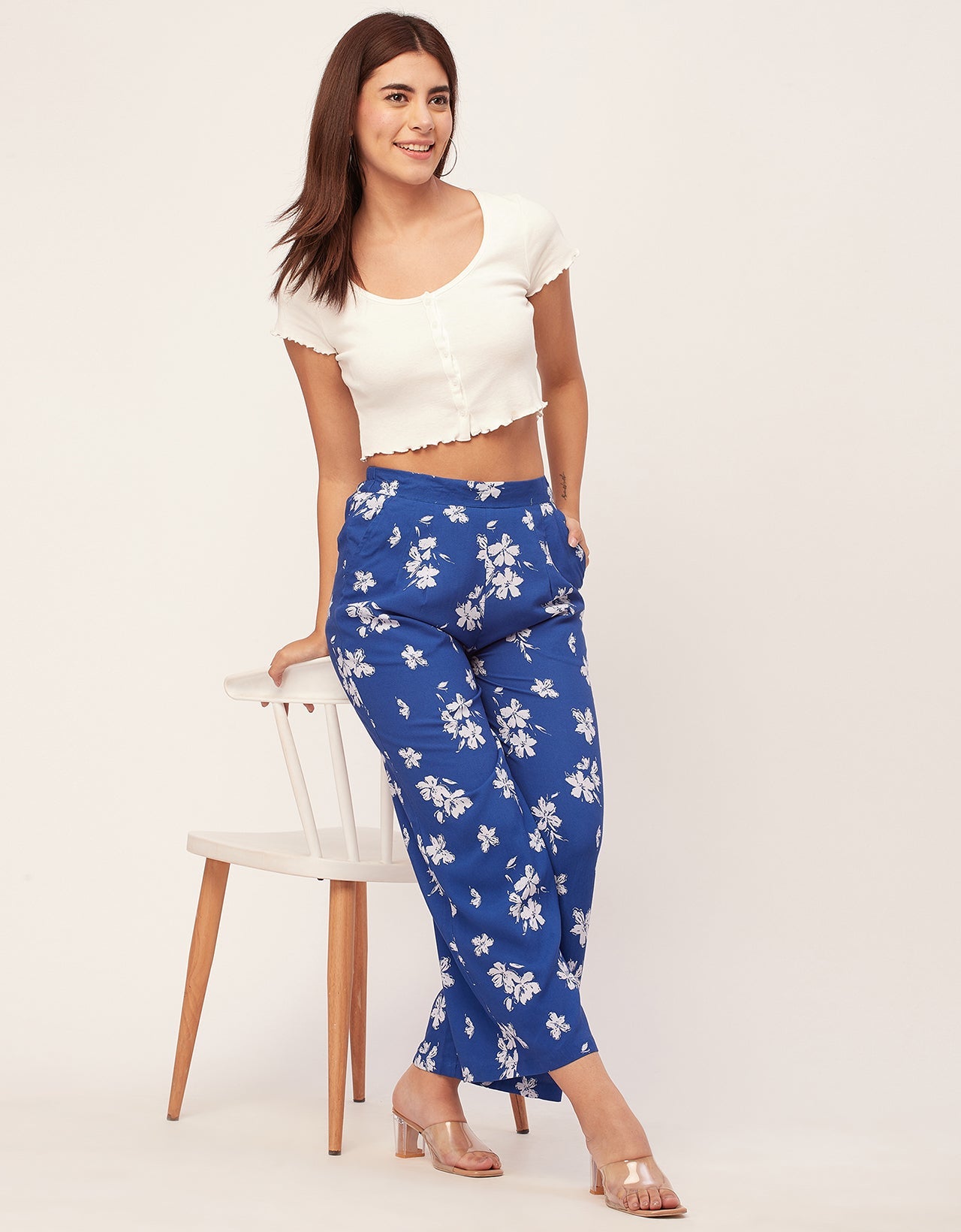 Printed Palazzo Pants, Elastic Waist