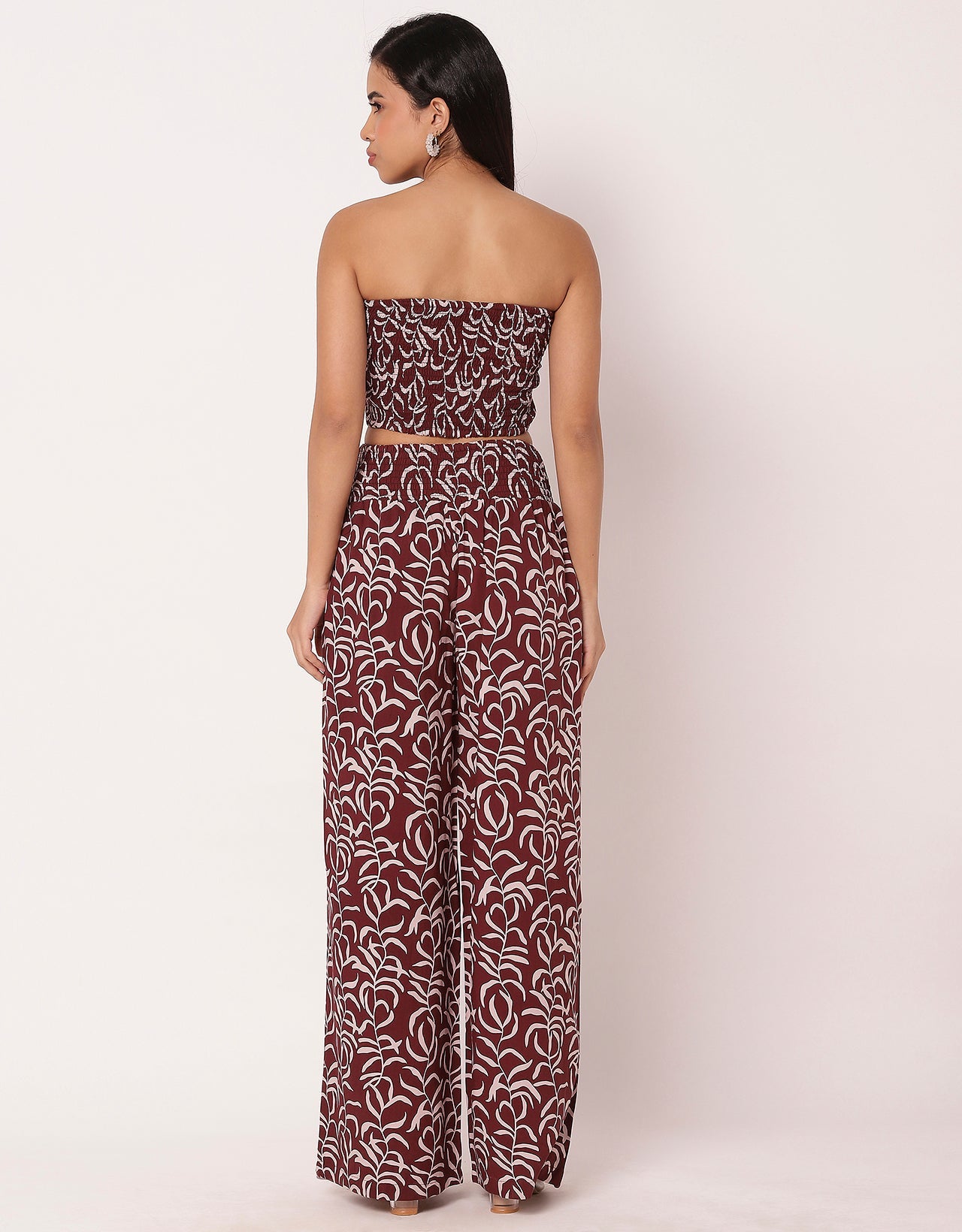 Features: Top and bottoms crafted from viscose rayon for all-day comfort. elastic-waist bottoms with pockets for convenience. smocked tube top and georgette shrug with tassels at the hem for a chic finish.