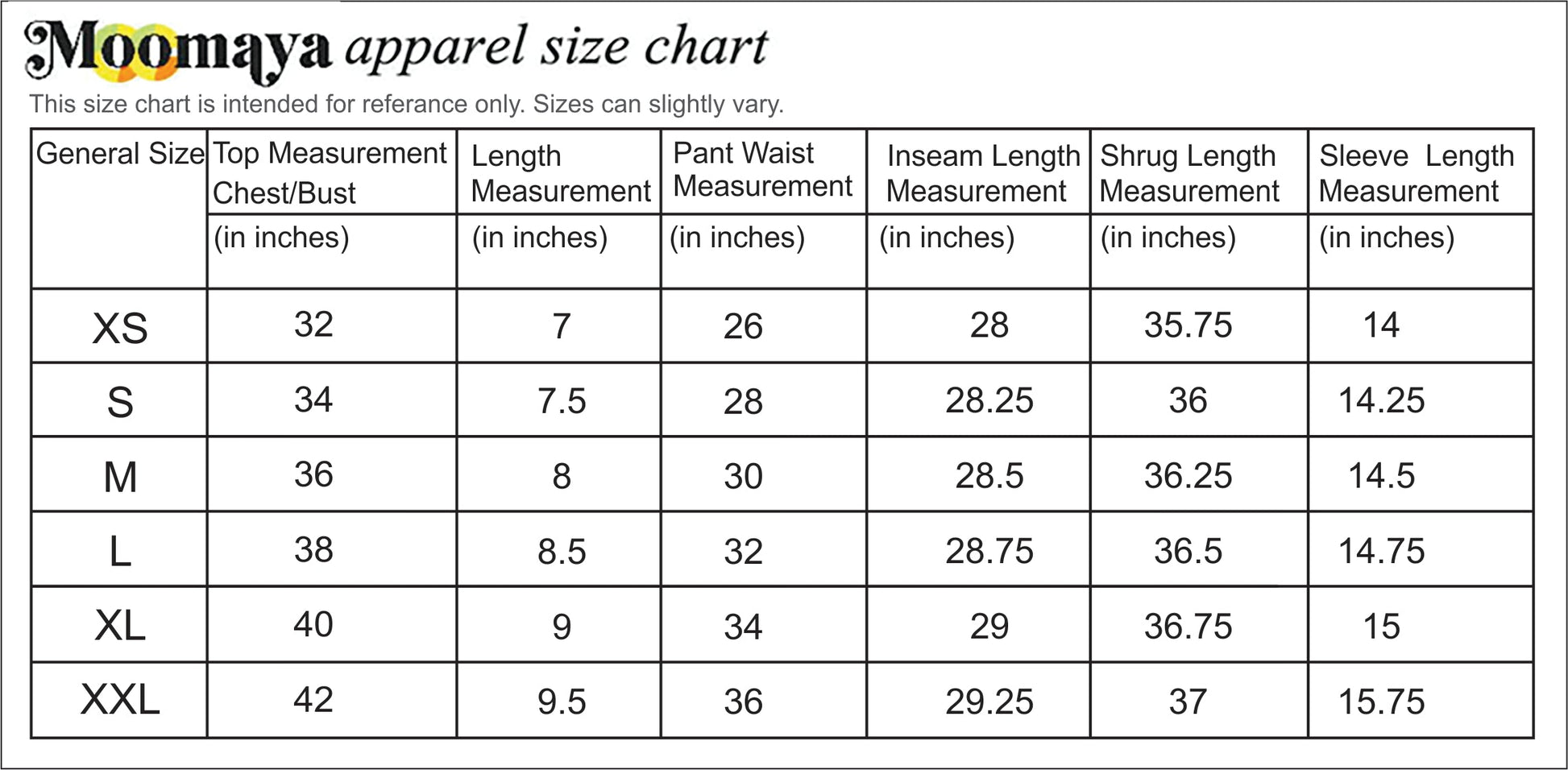 Top Length: 7.5 Inches (approx.) | Pant Length: 42 Inches (approx.) | Shrug Length: ......Inches (approx.)