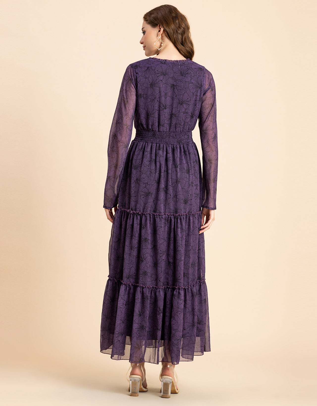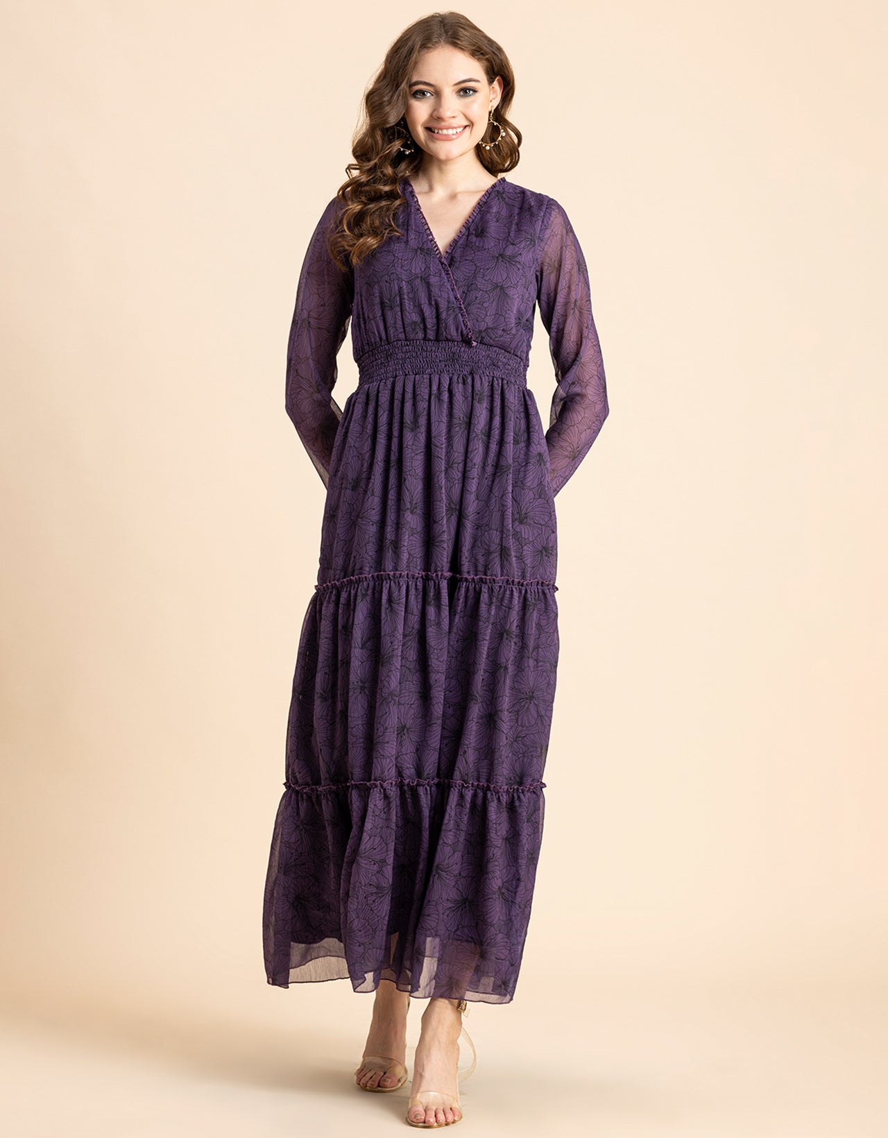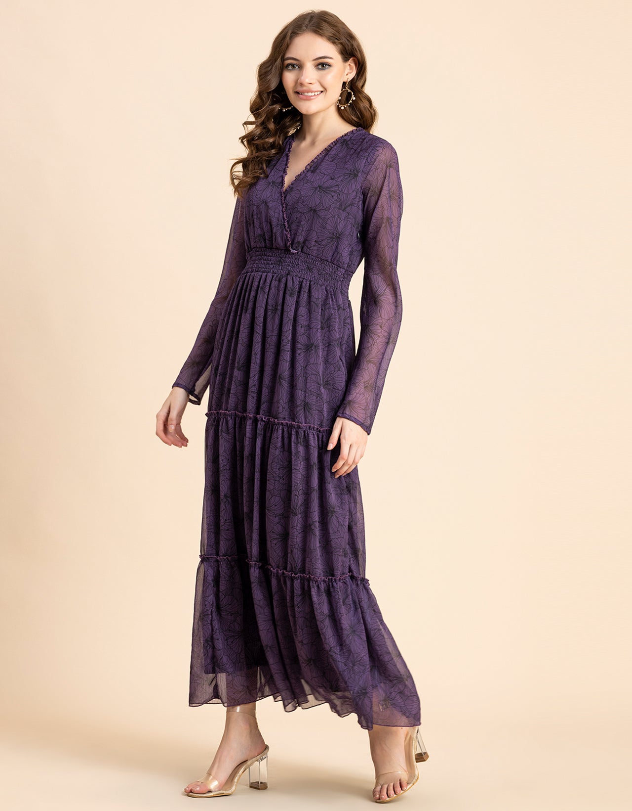 Tags: Printed Dress For Women, Flowy Dress For Women, Maxi Dress For Women, V-Neck Dress, Printed Full Sleeve Dresses