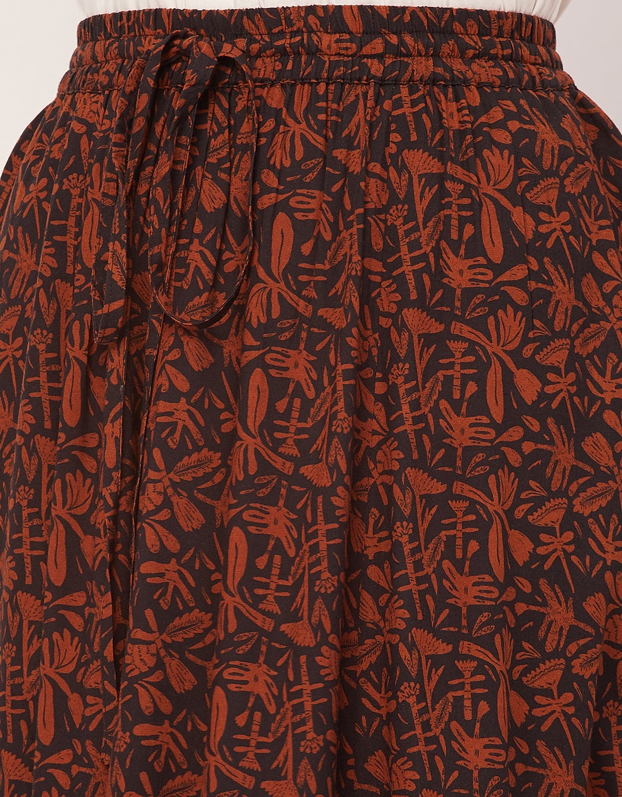 Features: Elastic Waist, Flared Hem, Maxi Length, Comfortable Fabric, Regular Fit, All Over Printed Pattern.