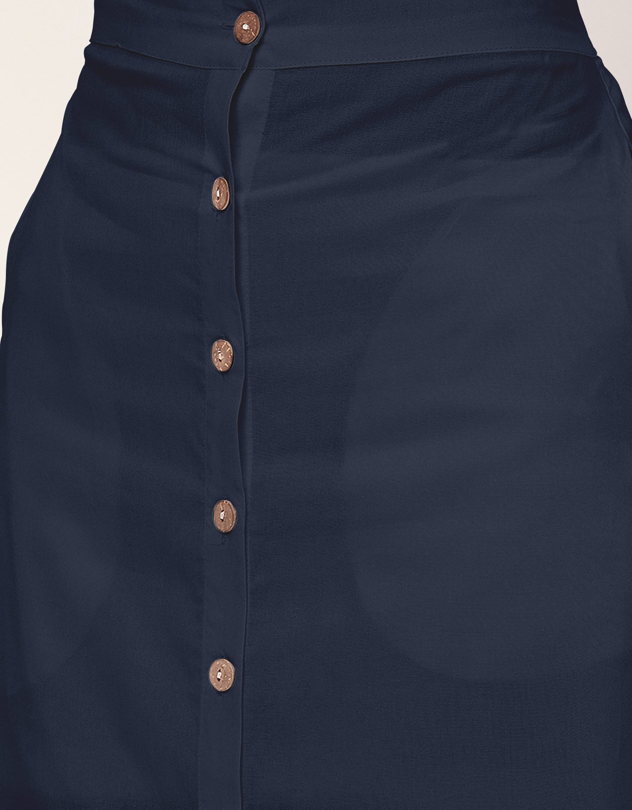 Features: Partially Elastic Waist, A-Line, Wooden Buttons On Front, Comfortable, Regular Fit, Solid Colors.