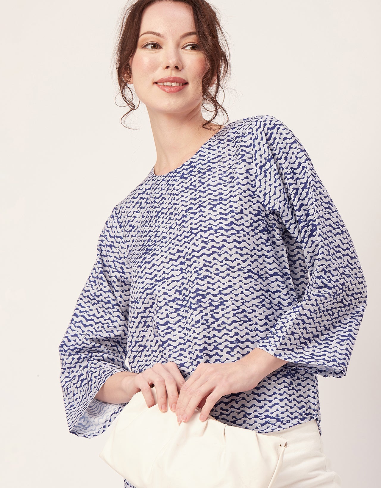 Features: Round Neck, Long Sleeves, Diagonal Hem, Lightweight And All Over Printed Pattern