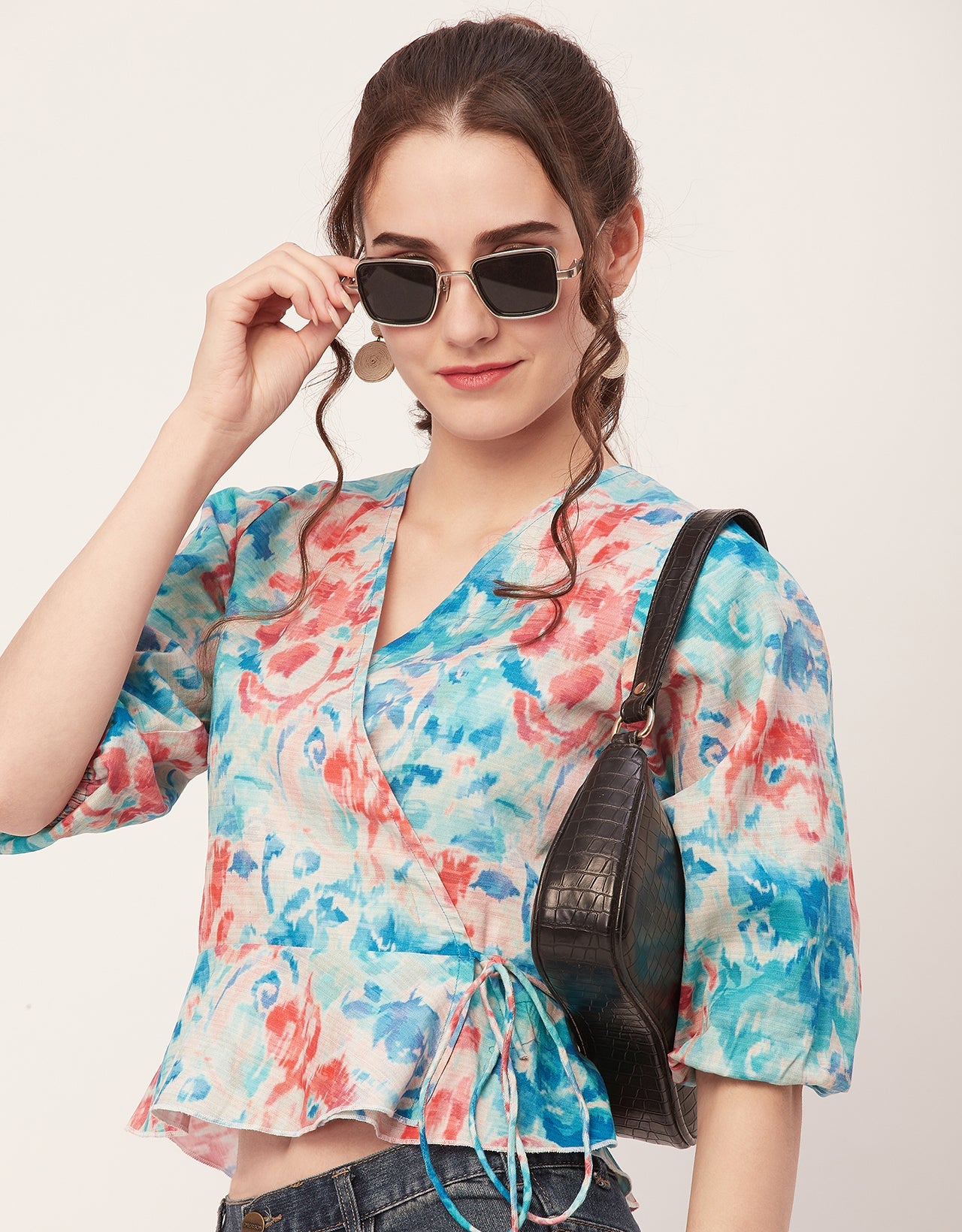 Tags: Printed Wrap Tops For Women, Wrap Style Tops, V Neck Tops For Women, Summer Tops, Women Tshirts For Women, Boho Chic Tops
