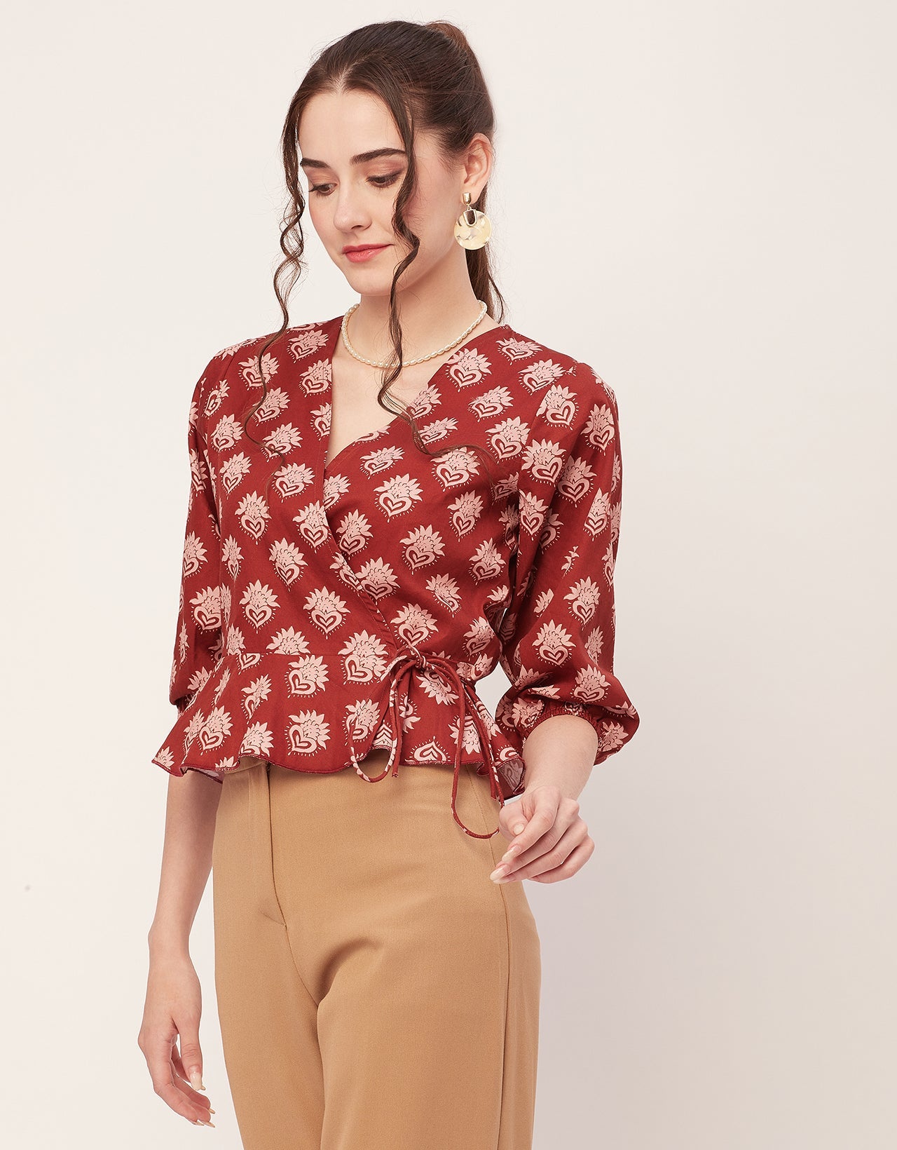 Tags: Printed Wrap Tops For Women, Wrap Style Tops, V Neck Tops For Women, Summer Tops, Women Tshirts For Women, Boho Chic Tops